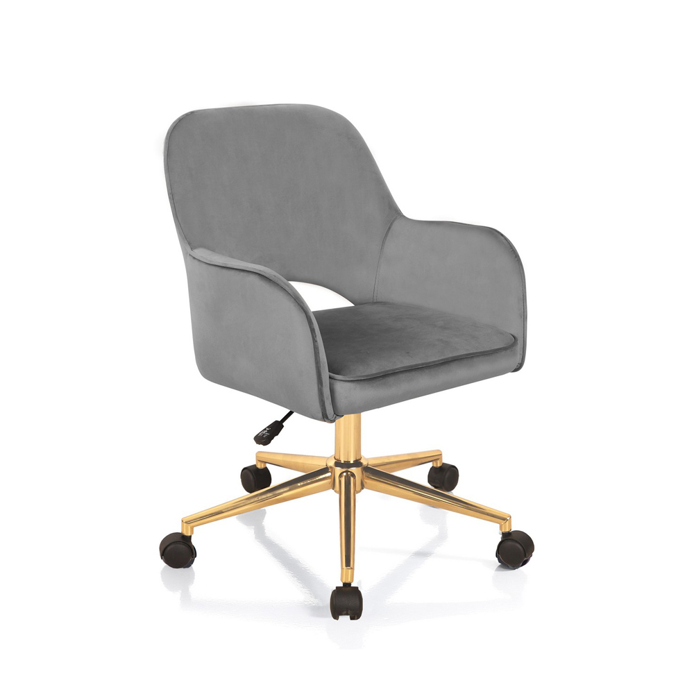 Sillón de oficina en tejido efecto terciopelo y metal.
