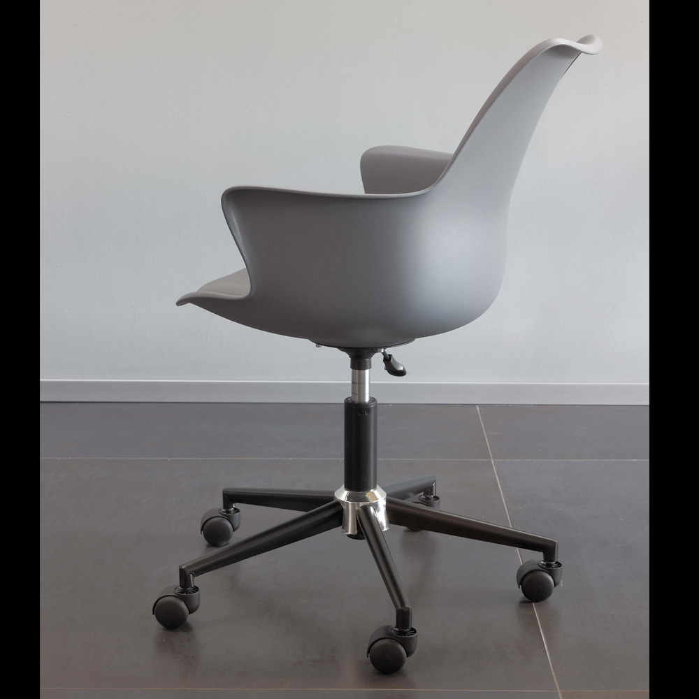 polipropileno. Líneas suaves y envolventes caracterizan el asiento de esta silla que pretende proporcionar confort y comodidad. Gracias a la posibilidad de regular la altura y a las ruedas giratorias es posible adaptarla para satisfacer mejor las diferentes necesidades de la persona, convirtiéndose en una silla cómoda y funcional para todos.