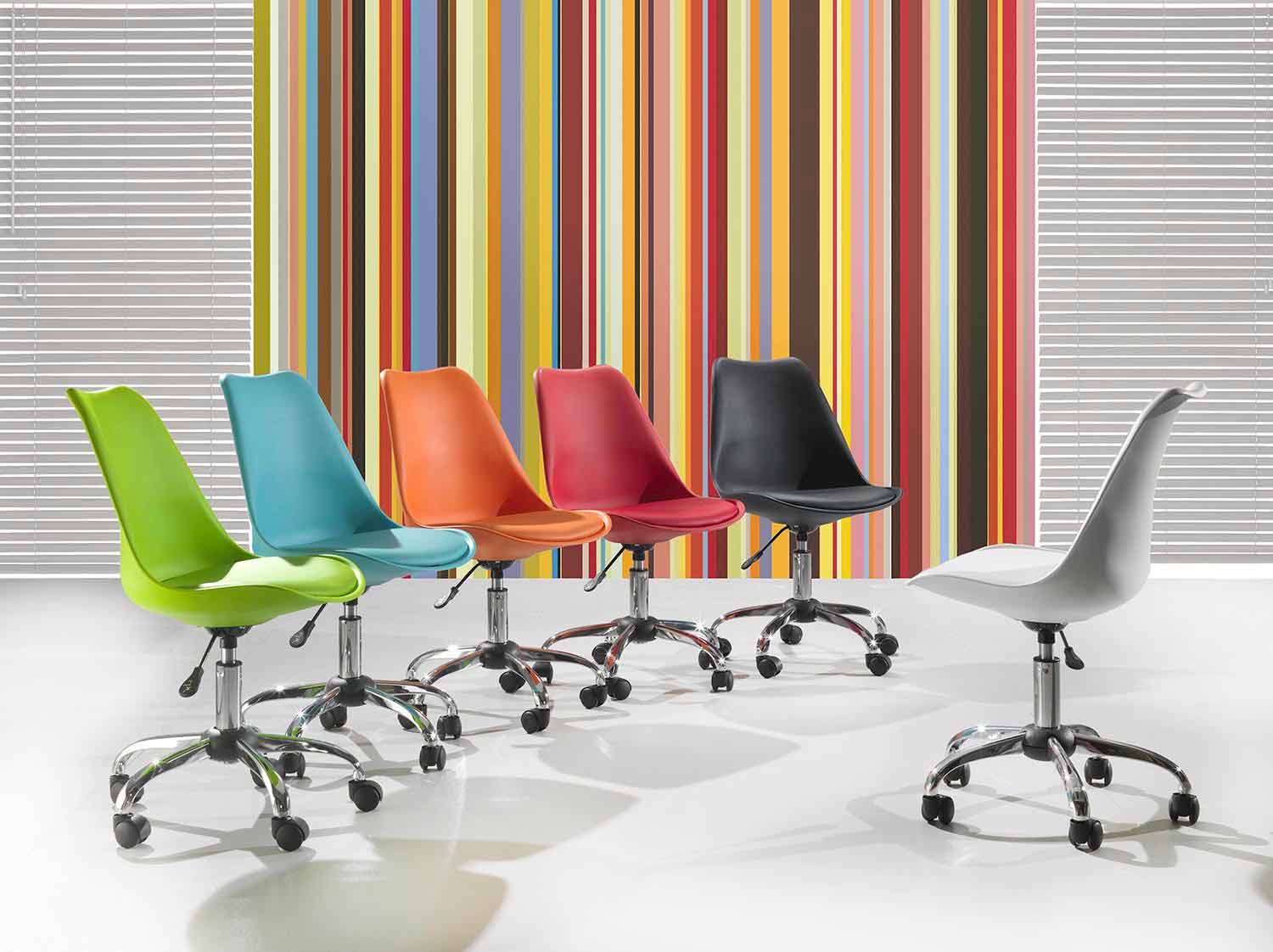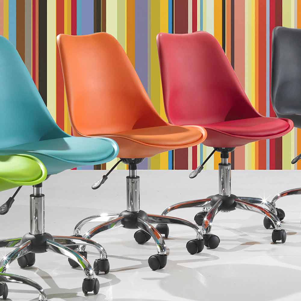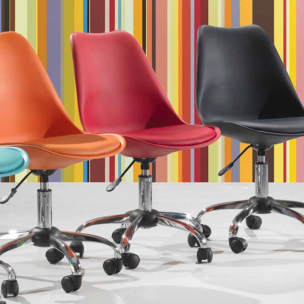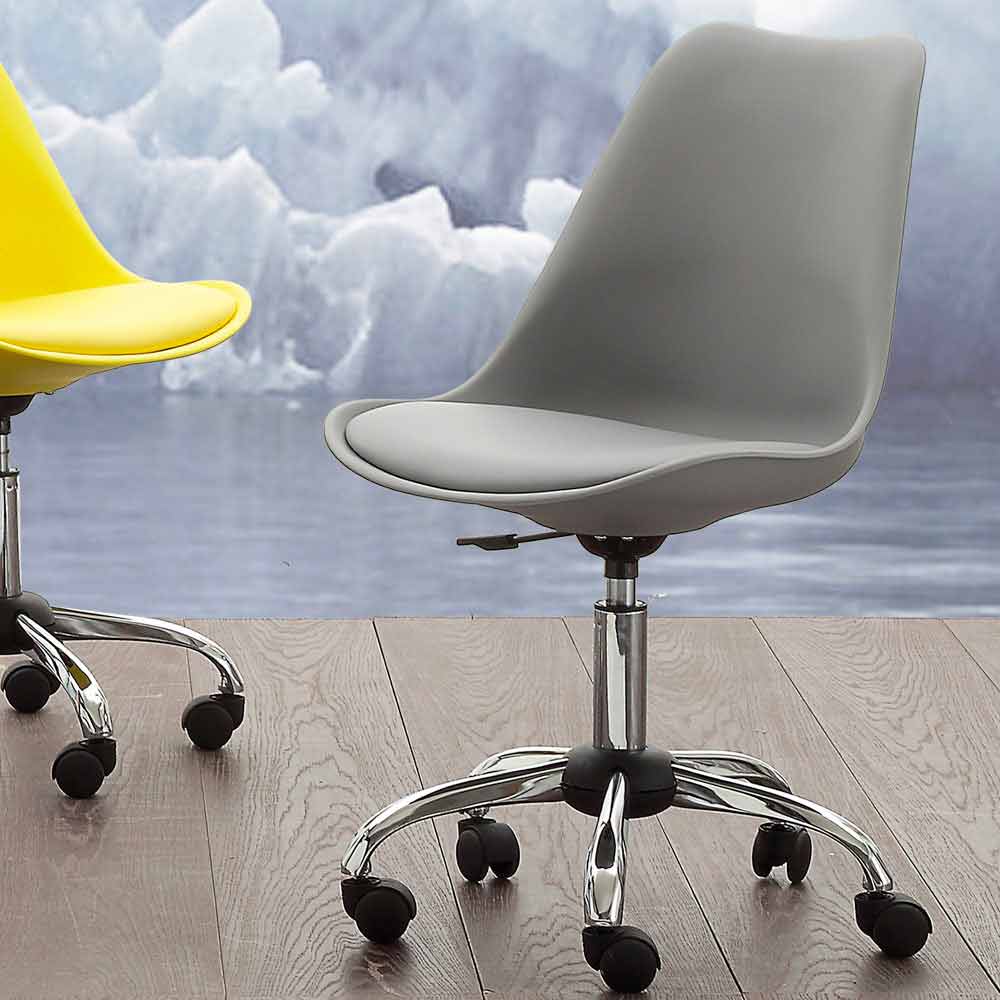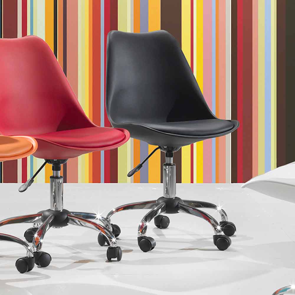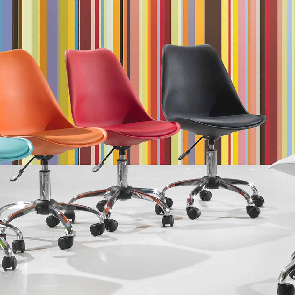 La silla de oficina Loredana es ideal para garantizar el máximo confort durante las horas de trabajo gracias a su asiento con elevador de gas. Realizado con un asiento de polipropileno y confortado por una almohadilla de cuero ecológico a juego con el asiento y base de metal cromado con ruedas.
