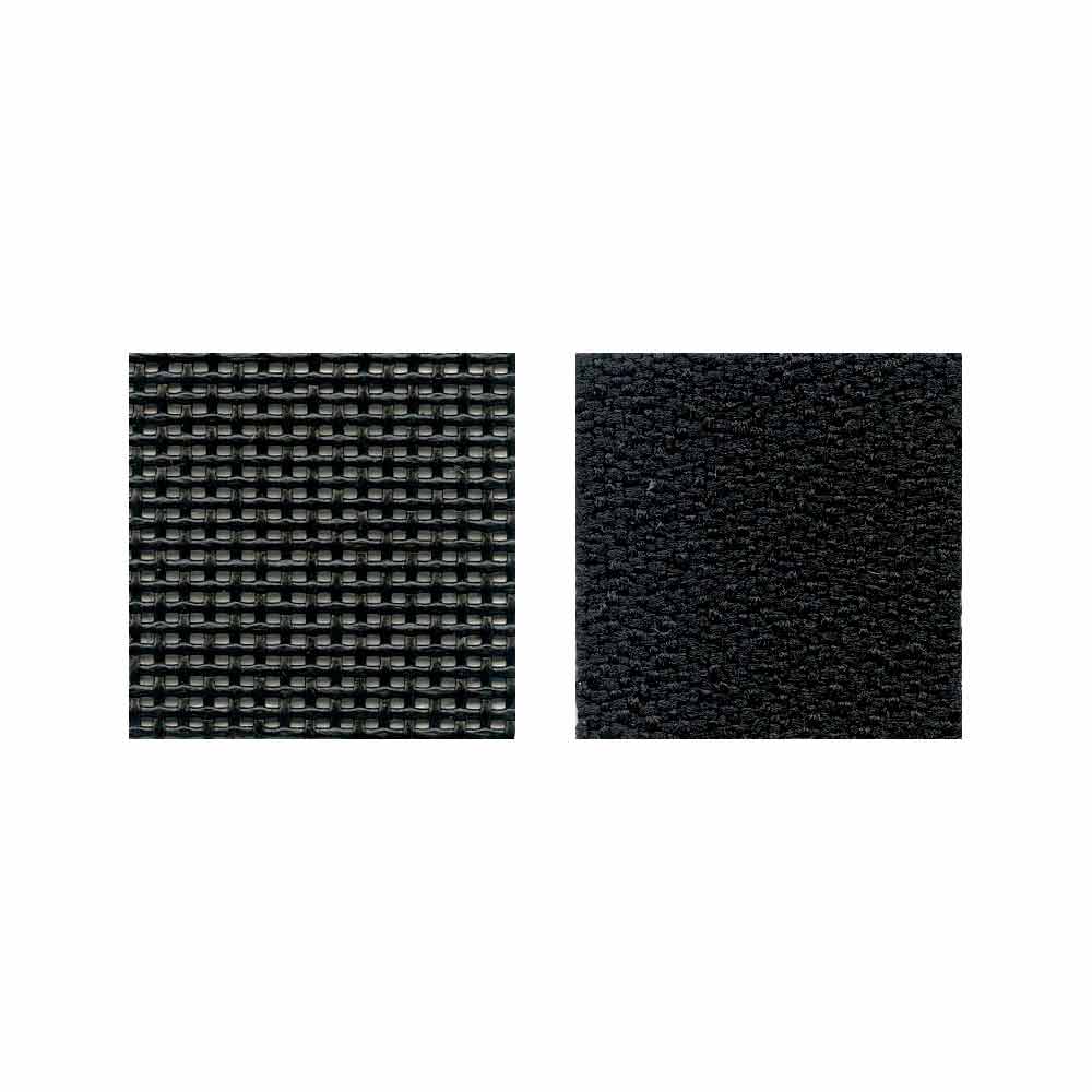 Asiento acolchado cubierto en tela negra y respaldo en tecnorete microperforado negro.