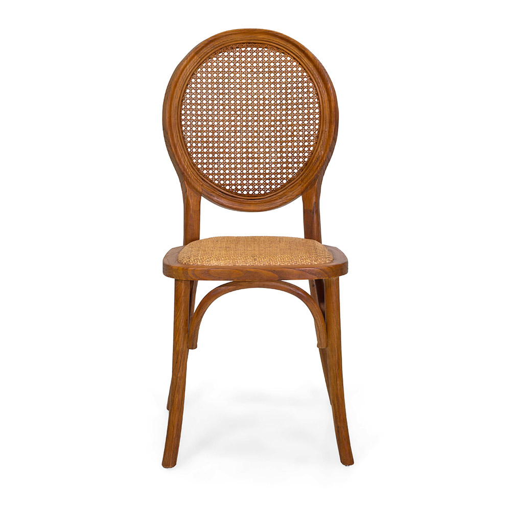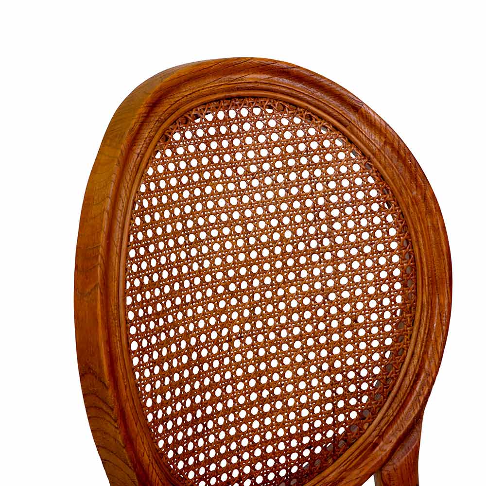 Fabricada en madera , esta silla expresa una belleza atemporal, caracterizada por una estructura sólida y resistente. El respaldo ovalado en paja de Viena tejida añade un toque de elegancia retro , haciéndola ideal para ambientes con un sabor clásico o shabby chic.