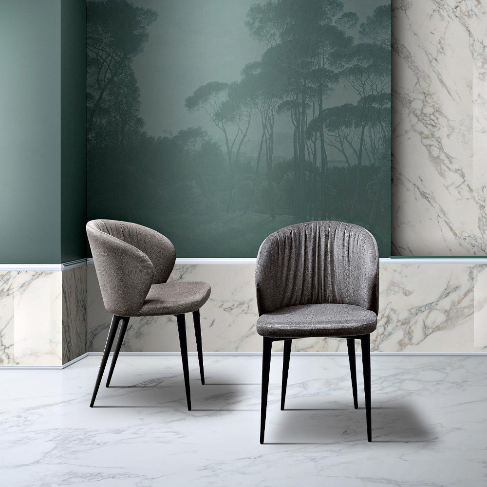 Transforma tu comedor en un espacio más cómodo y elegante con el moderno sillón bañera tapizado en tela cristal fácil de limpiar y disponible en diferentes variantes de color: