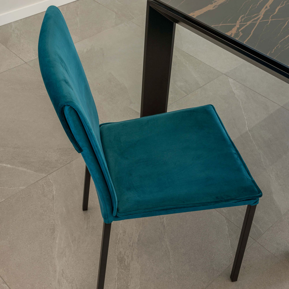 estructura de metal pintado de negro. Este producto está diseñado para todos aquellos que quieran combinar funcionalidad con modernidad. De hecho, esta silla es perfecta para incluirla en salas de estar, cocinas y comedores contemporáneos y modernos, donde se viven momentos familiares cotidianos y donde la practicidad es esencial. Gracias a los materiales utilizados para la producción, queremos garantizar al cliente un producto que no sólo sea bonito a la vista sino también de calidad y resistente en el tiempo.
