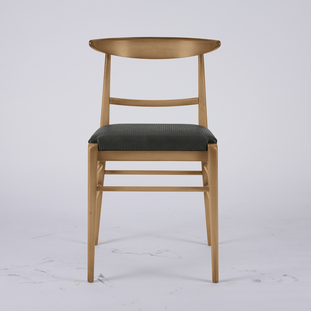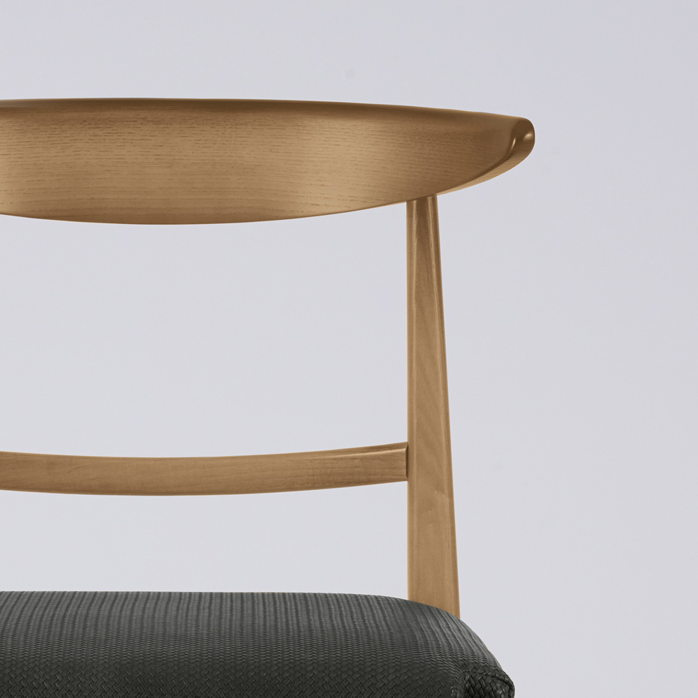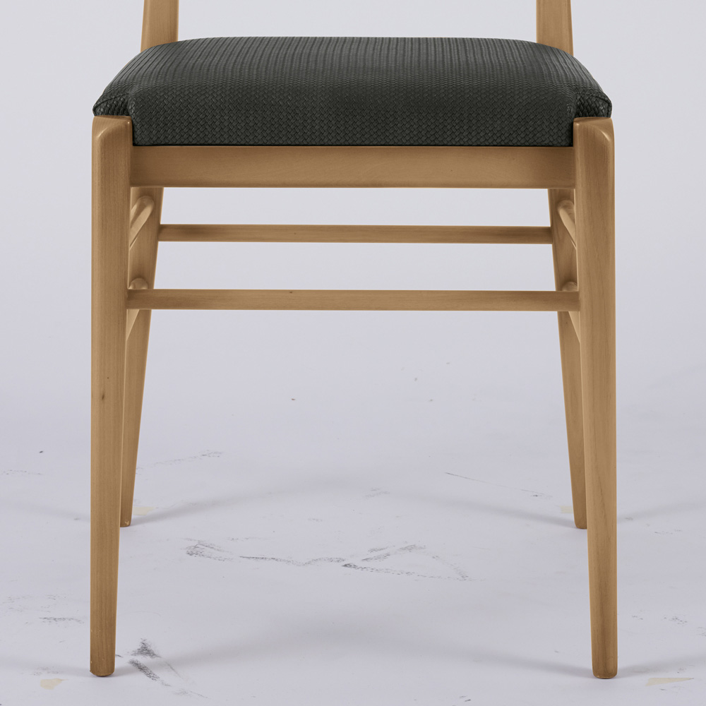 Silla de madera con travesaños y asiento de tela Made in Italy.