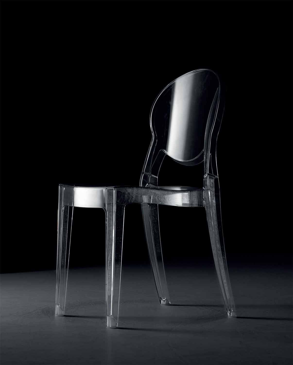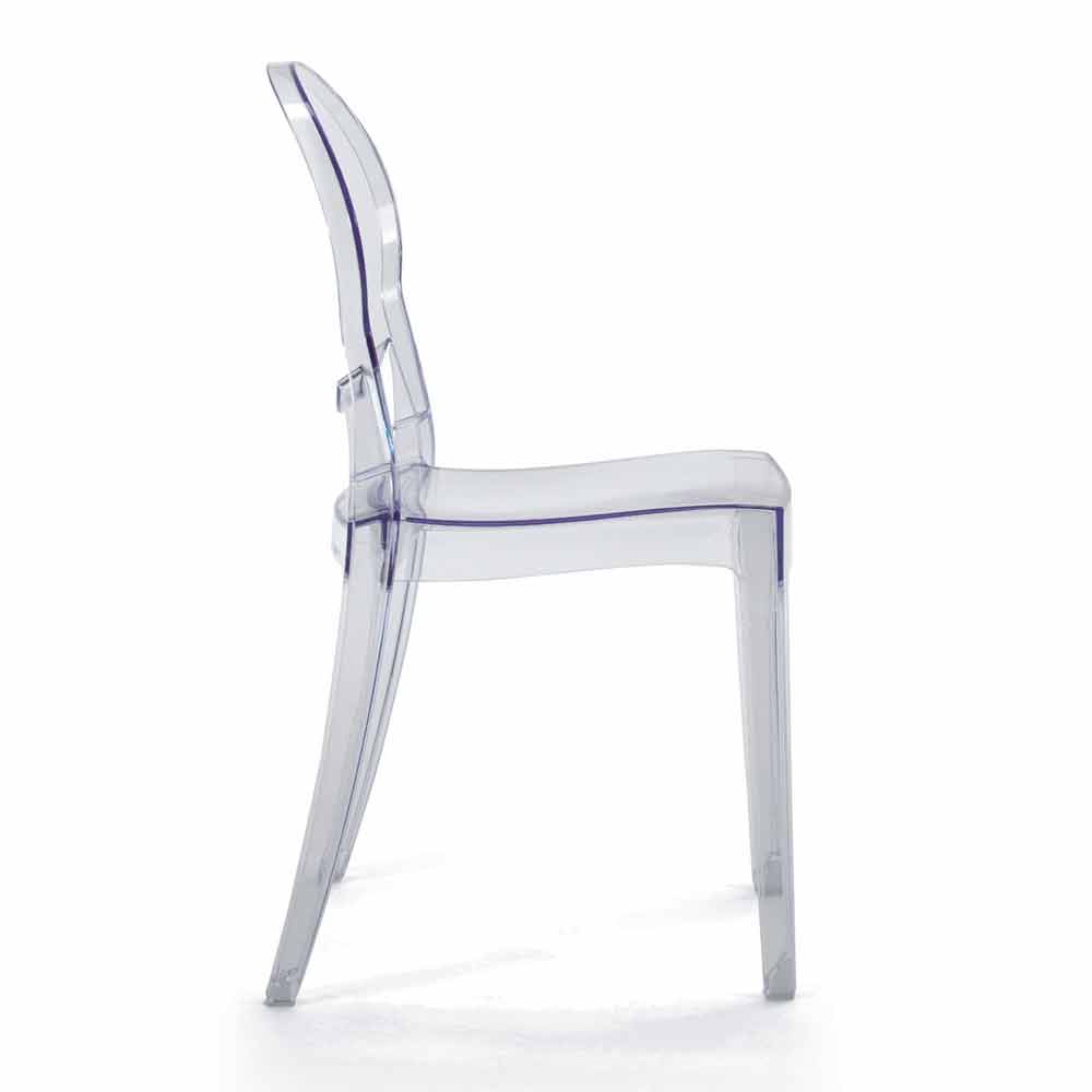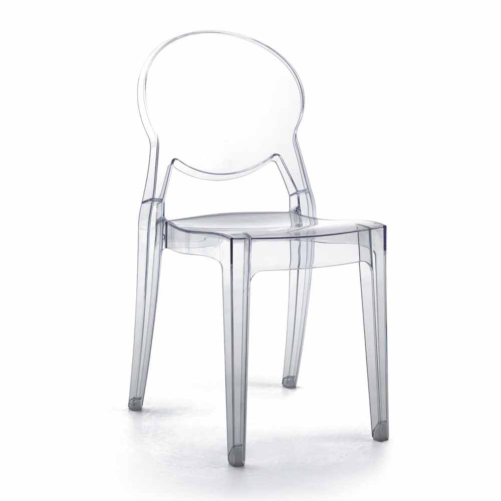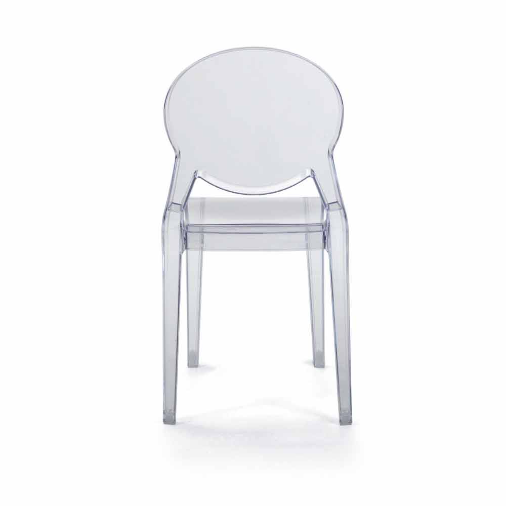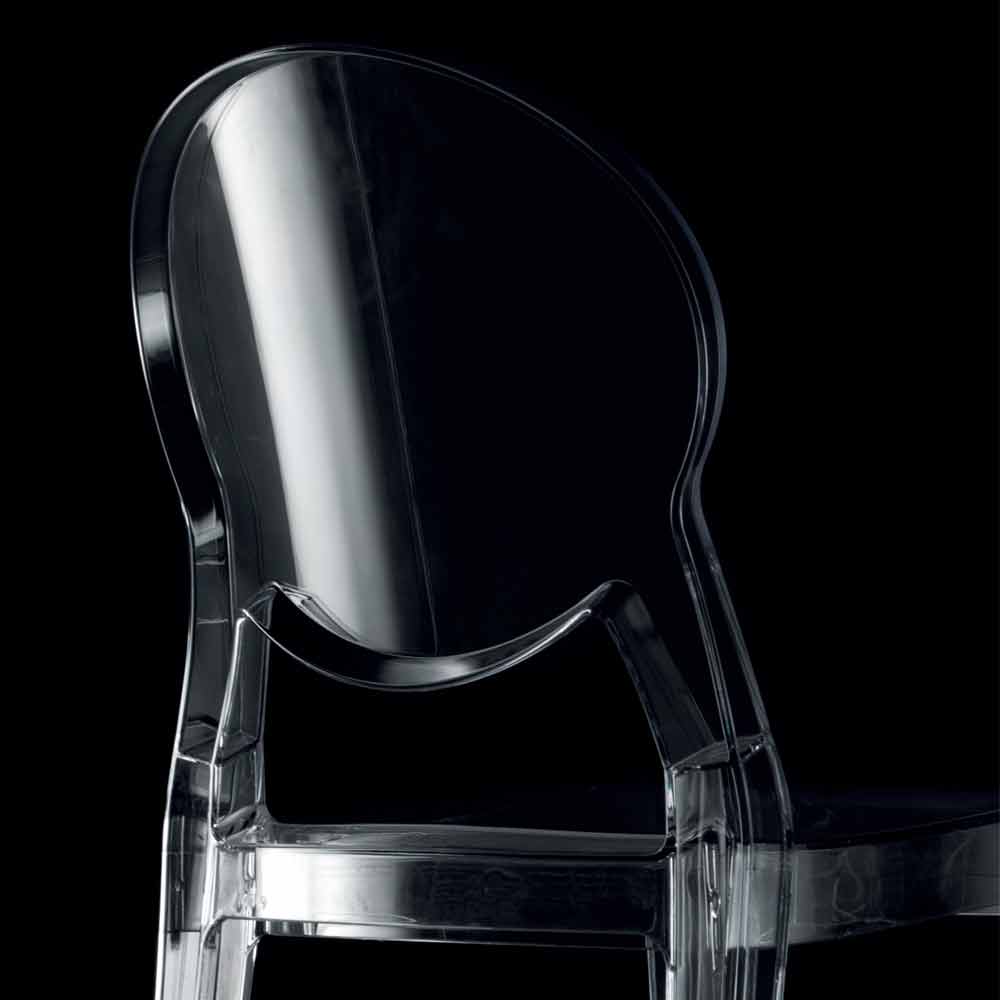 Silla apilable de diseño moderno apta para exterior e interior en policarbonato transparente, fabricada en Italia.