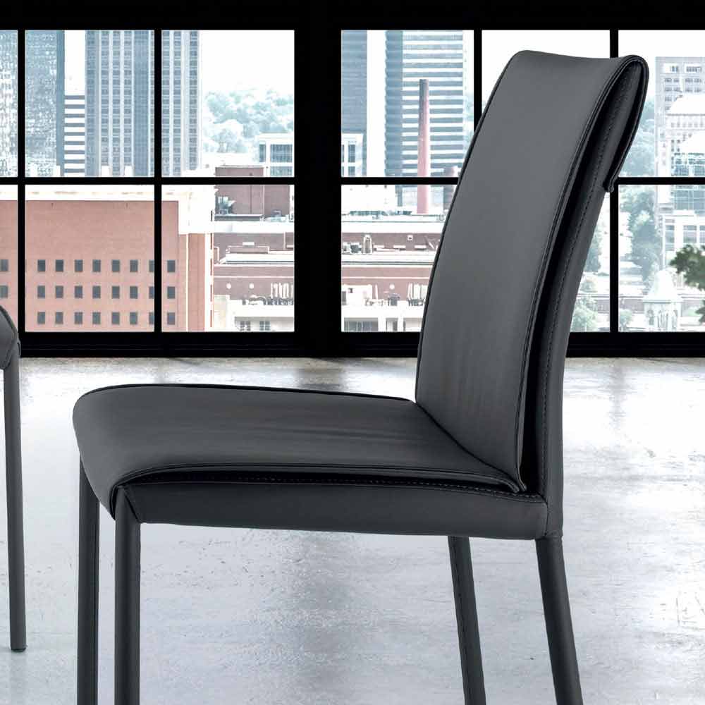 Silla de comedor acolchada completamente revestida en tela, piel, terciopelo o ecopiel; hecho a mano en Italia.