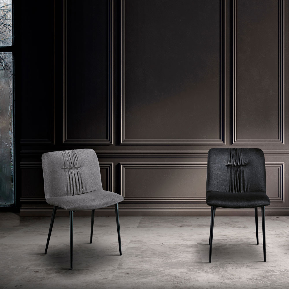 Transforma tu comedor en un espacio más cómodo y elegante con la moderna silla monocasco con asiento tapizado en tela cristal de fácil limpieza y disponible en diferentes variantes de color: