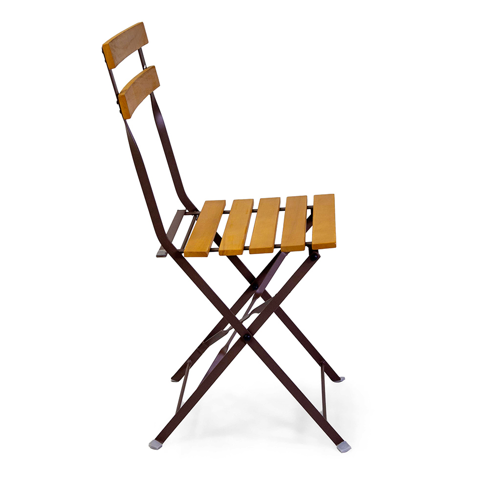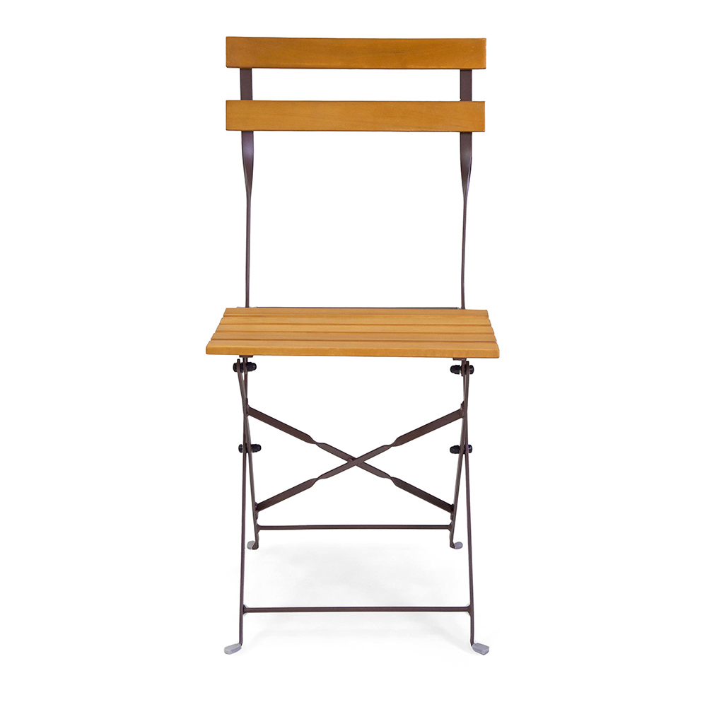 Esta silla combina funcionalidad y estilo con su estructura de metal y asiento de madera de acacia. La construcción ligera pero resistente garantiza un fácil transporte y almacenamiento, mientras que la madera añade un toque de calidez natural y durabilidad.