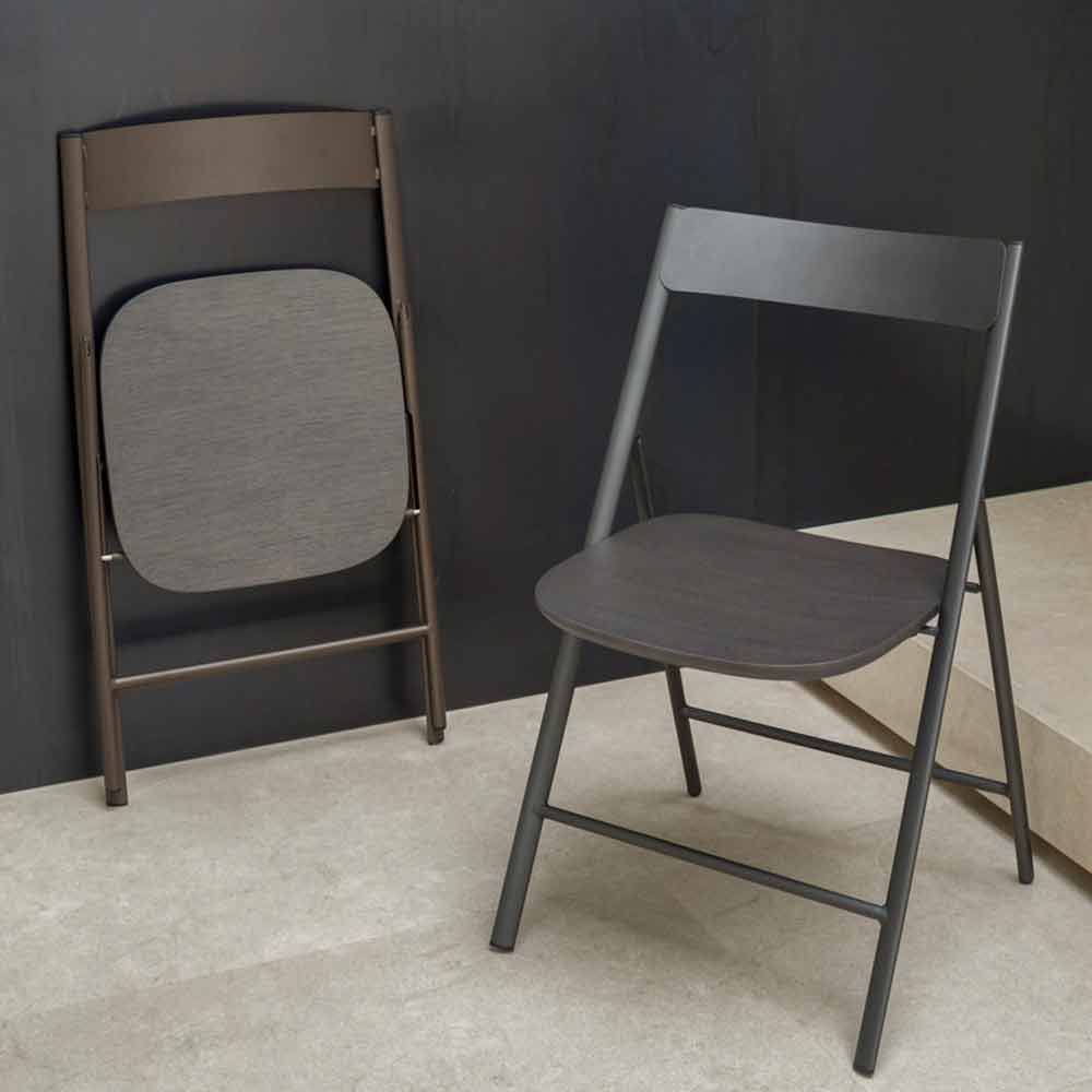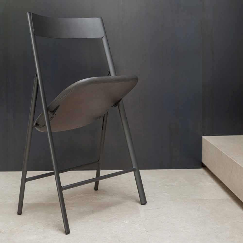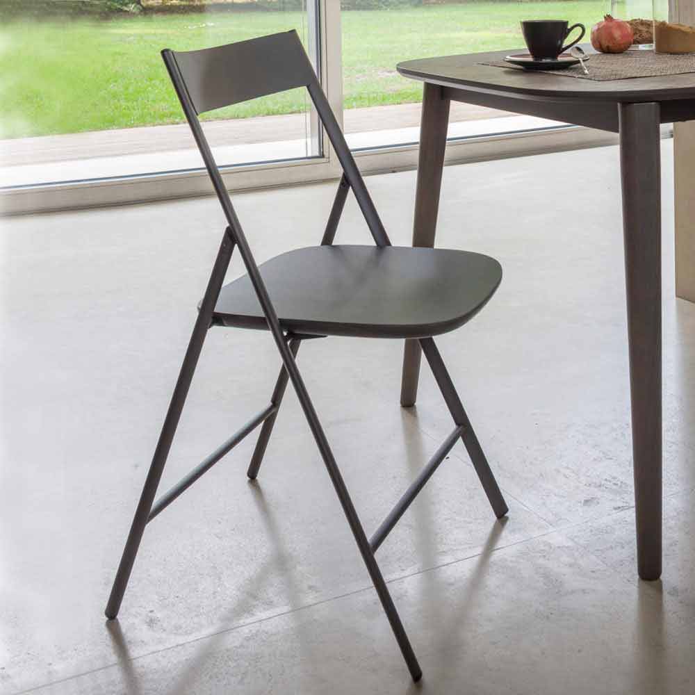 Esta cómoda silla se caracteriza por su diseño simple y minimalista, de inspiración clásica, funcional y plegable para maximizar el espacio y utilizarlo según las necesidades. Gracias a su esencialidad, se puede combinar con diferentes contextos de decoración en virtud de un diseño sobrio y refinado.