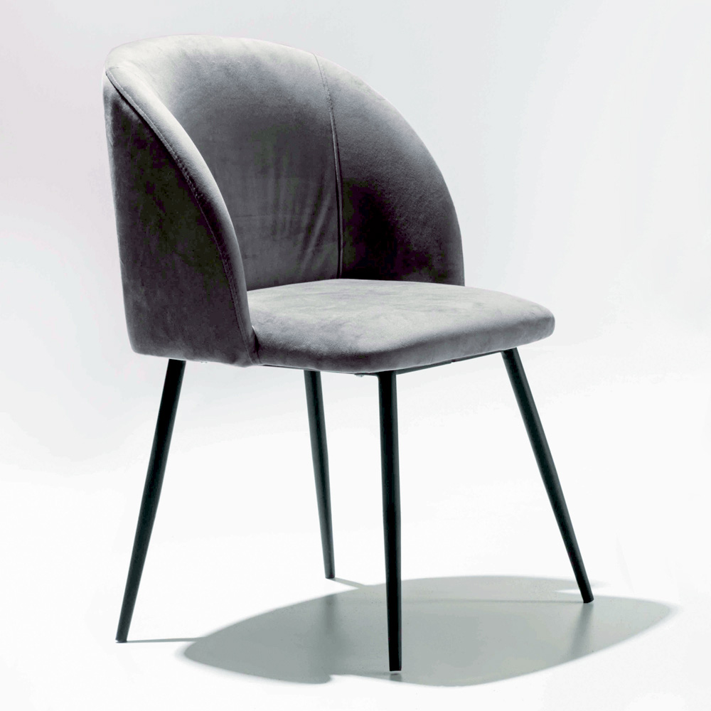 Silla tapizada en terciopelo antimanchas con patas de metal negro, 2 piezas.