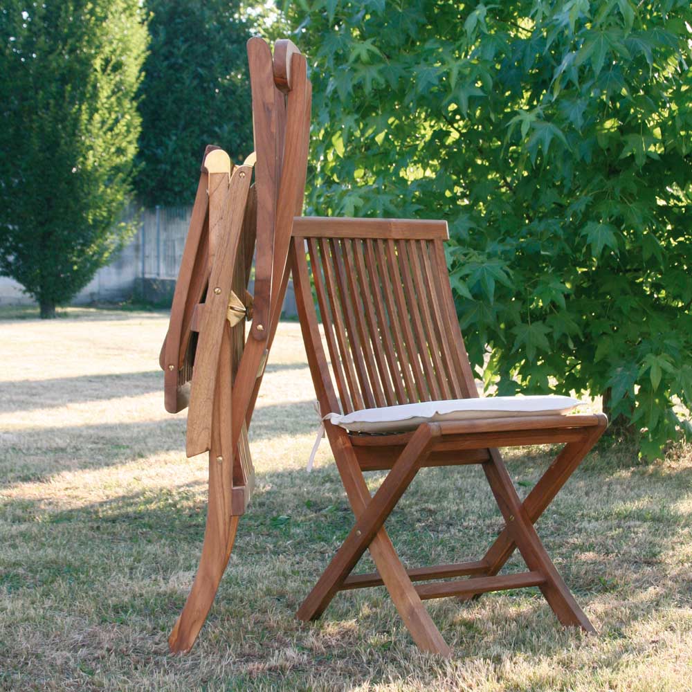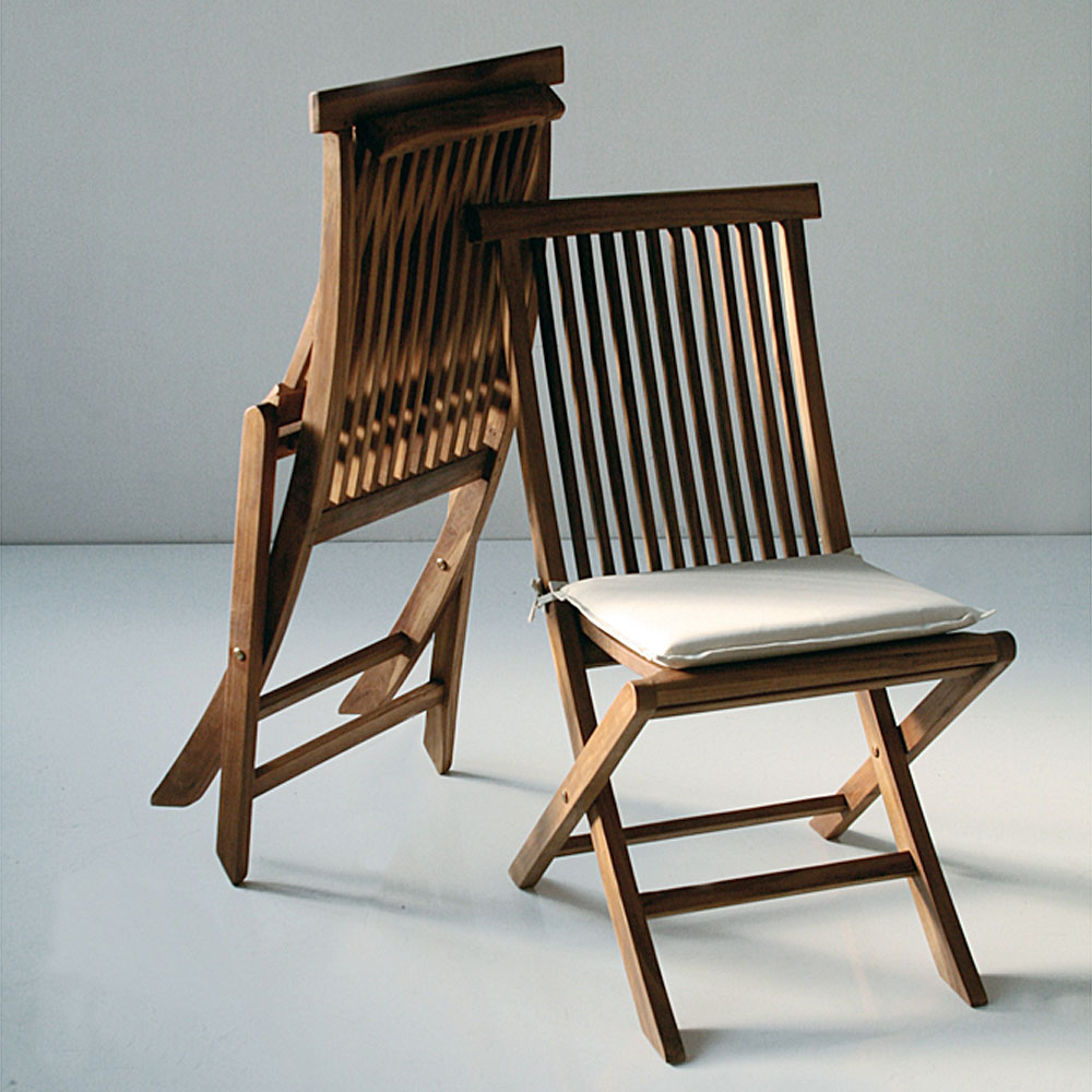 . Sillas plegables para uso exterior, con cojín de crema repelente al agua.