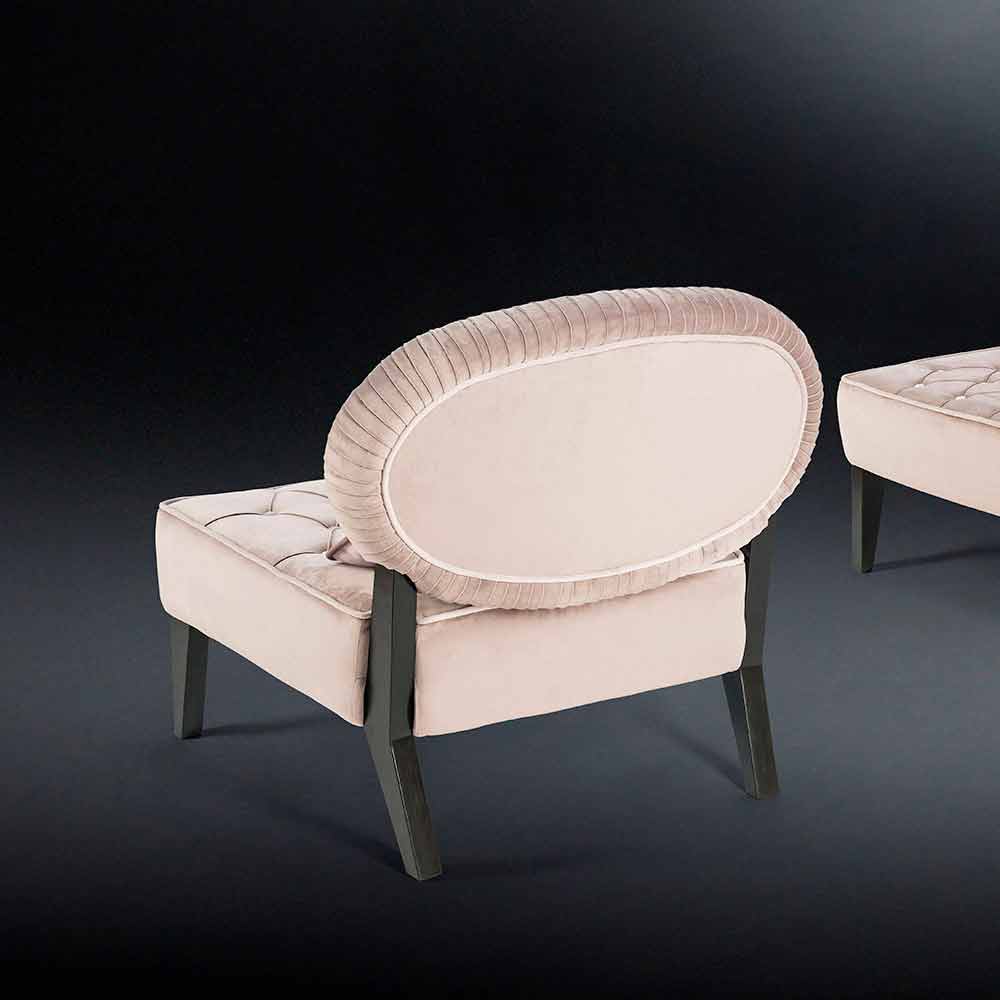 Elizabeth es un elegante y extraordinario sillón de diseño original, refinado y exclusivo. Se compone de una estructura de madera, de un profundo asiento muy cómodo y de un respaldo de forma original oval. Respaldo y asiento con acolchado de poliuretano expandido de densidad diferenciada.