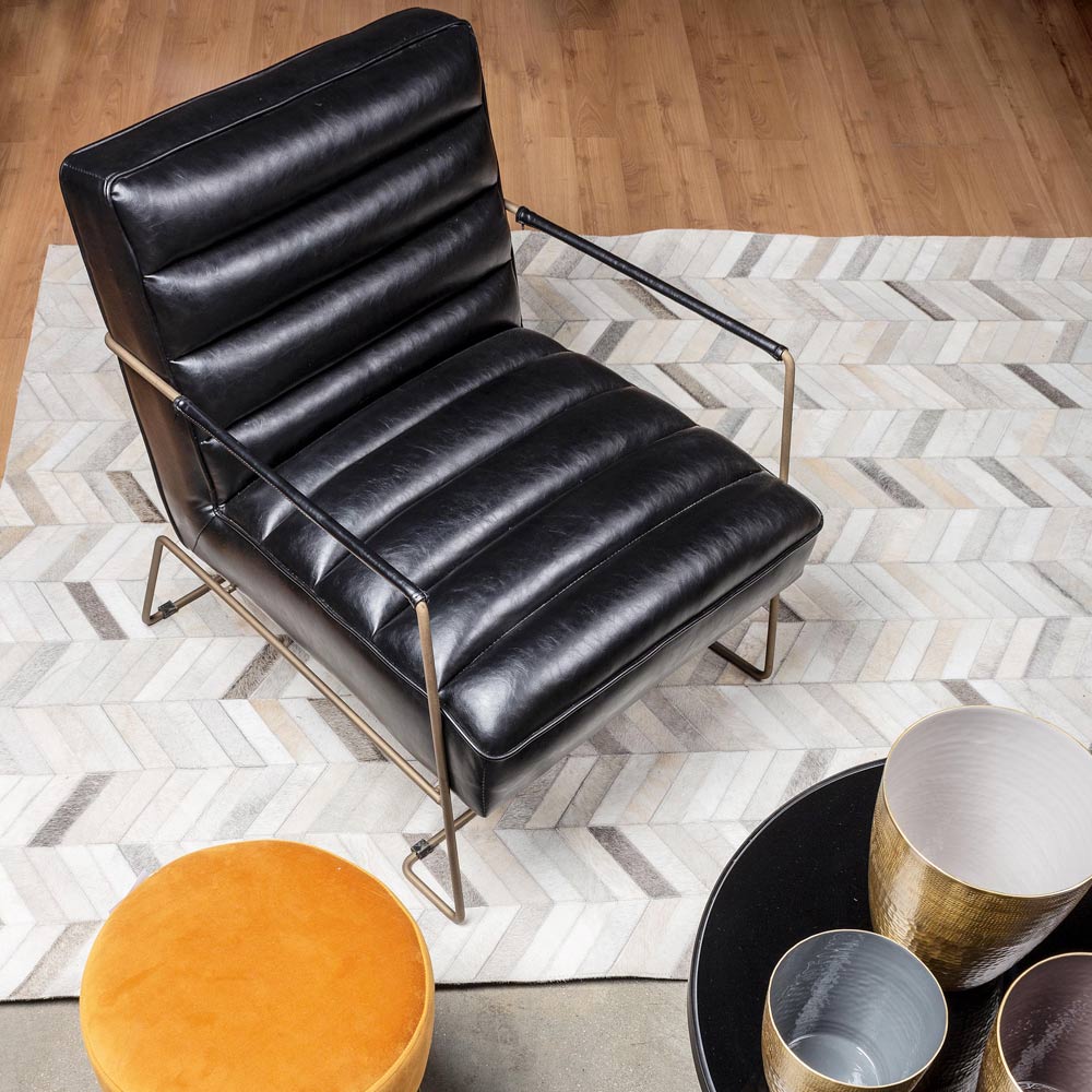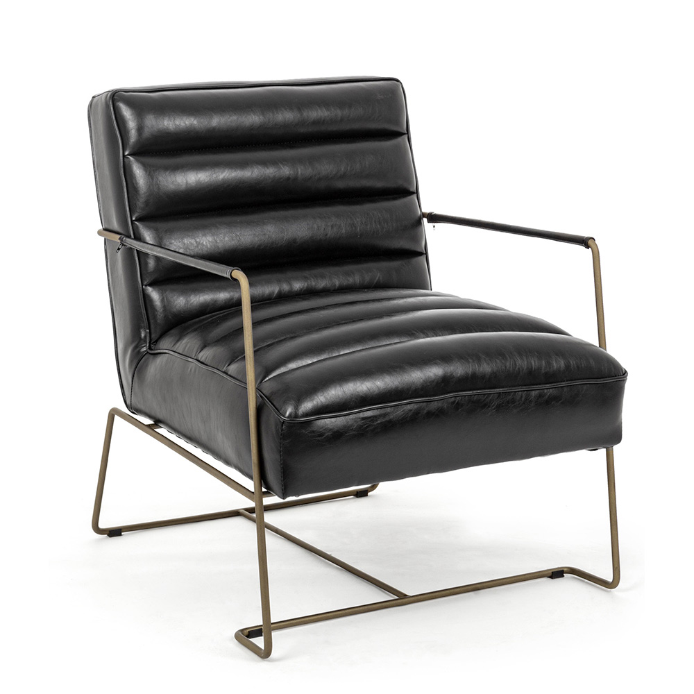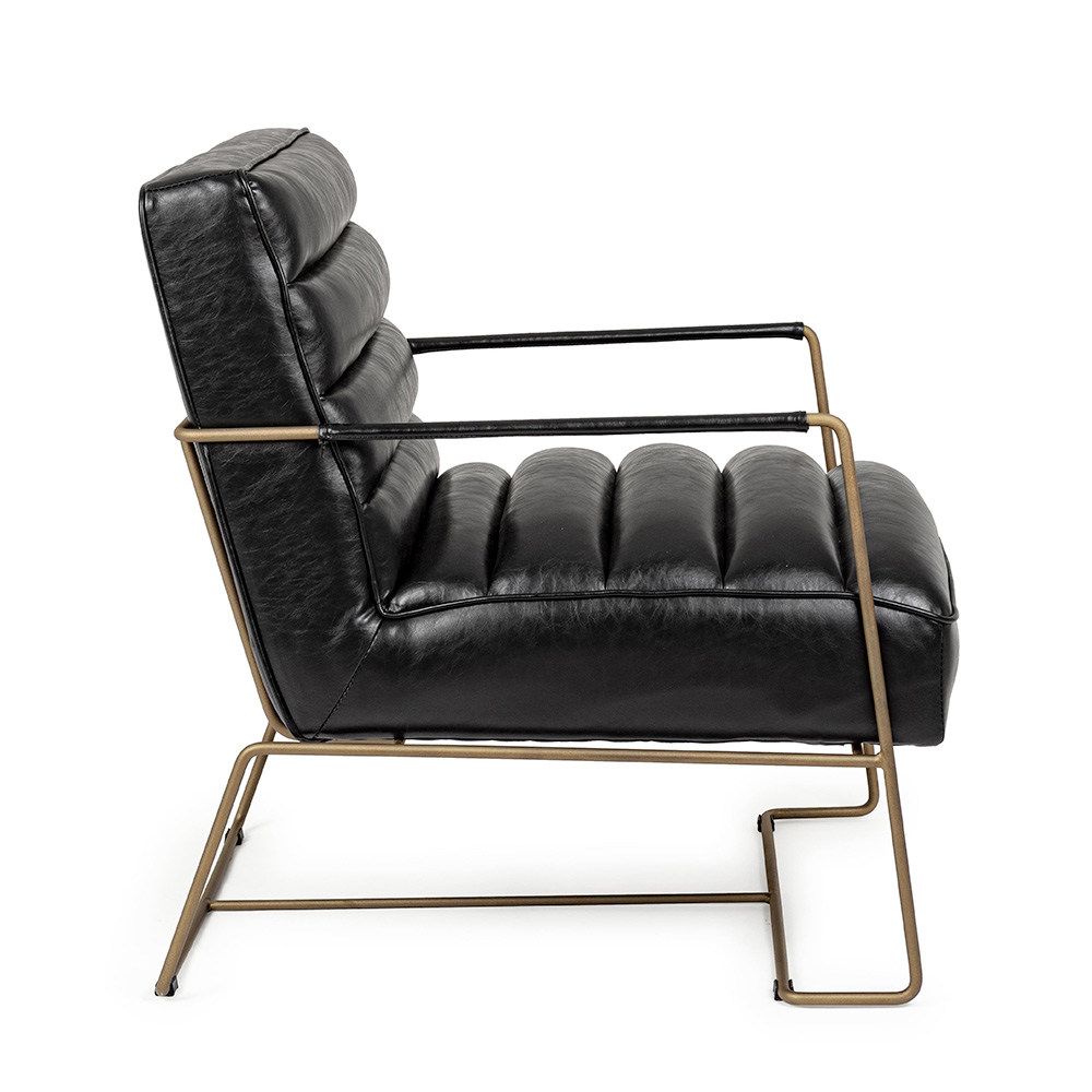 Sillón de diseño clásico en acero y asiento en ecopiel negra o marrón.