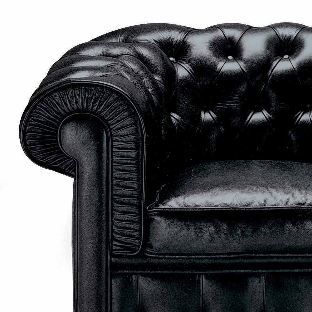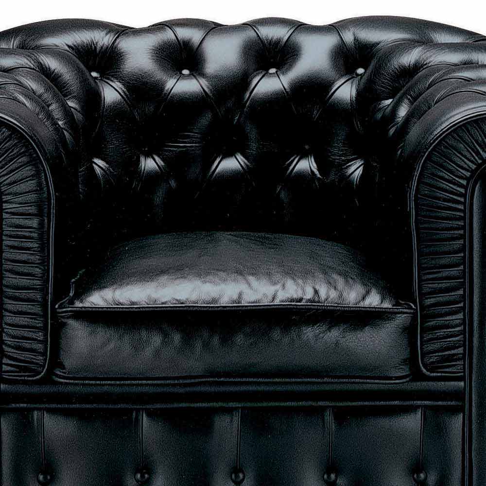 Sillón clásico de cuero con pies de madera fabricado en Italia.