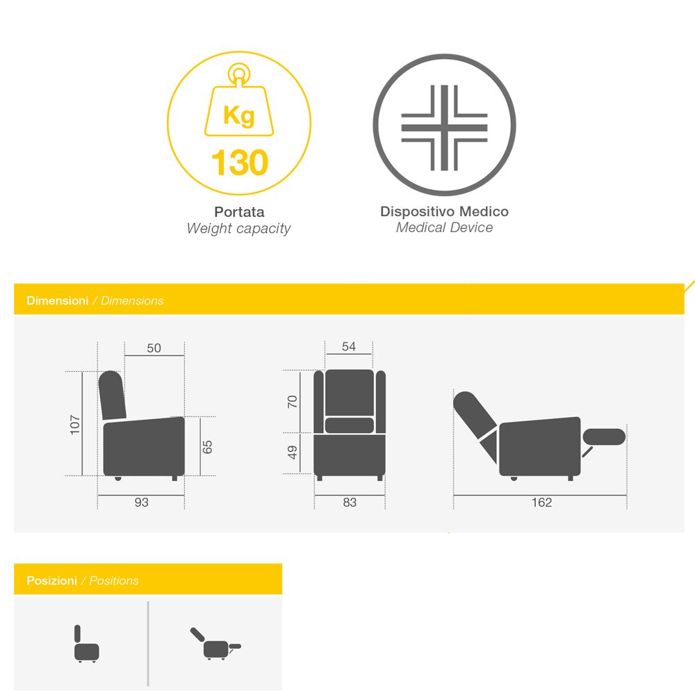 Sillón con movimiento que alcanza la posición relajada del respaldo y pie de cama.