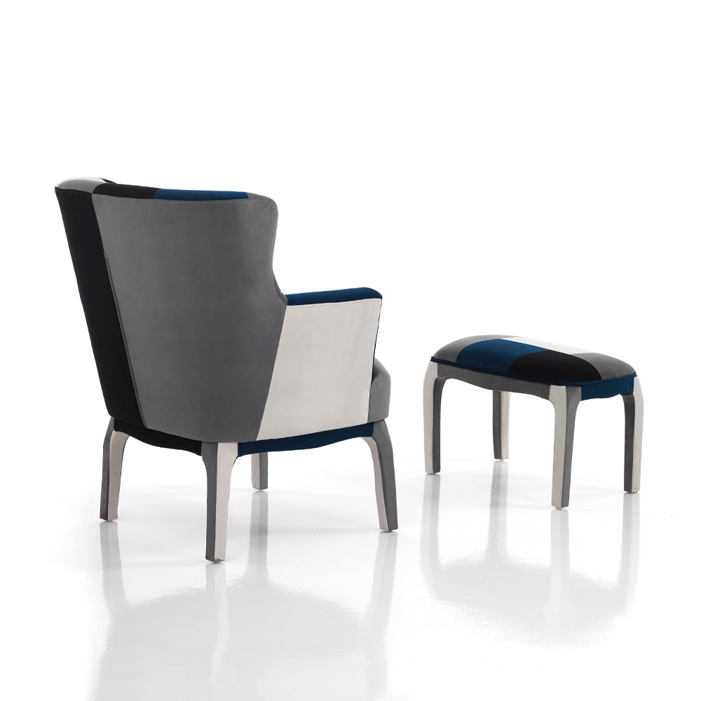 tapizado en tela con técnica patchwork no desenfundable y pies en