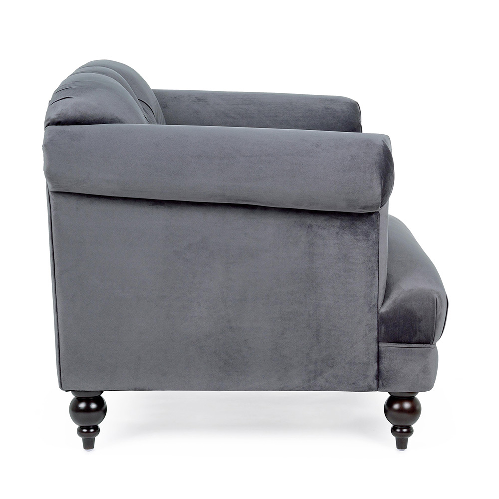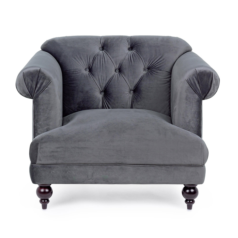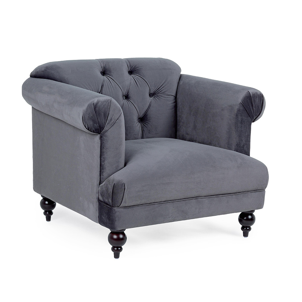 Sillón clásico tapizado en madera y poliéster efecto terciopelo 2 acabados.