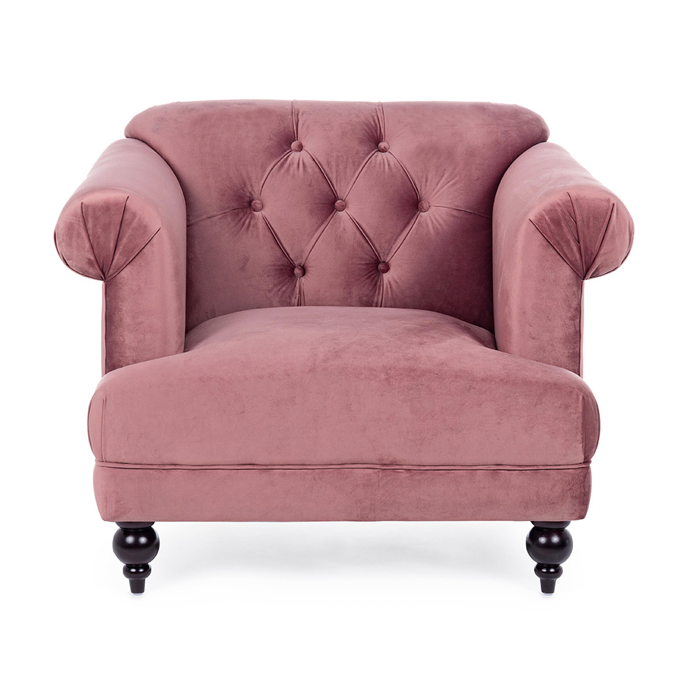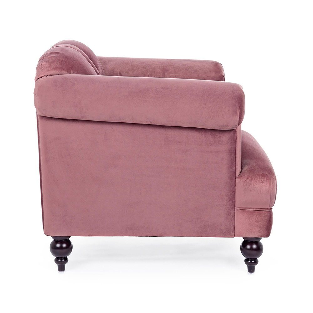 Sillón de diseño clásico en madera y efecto terciopelo gris o rosa - Sanny