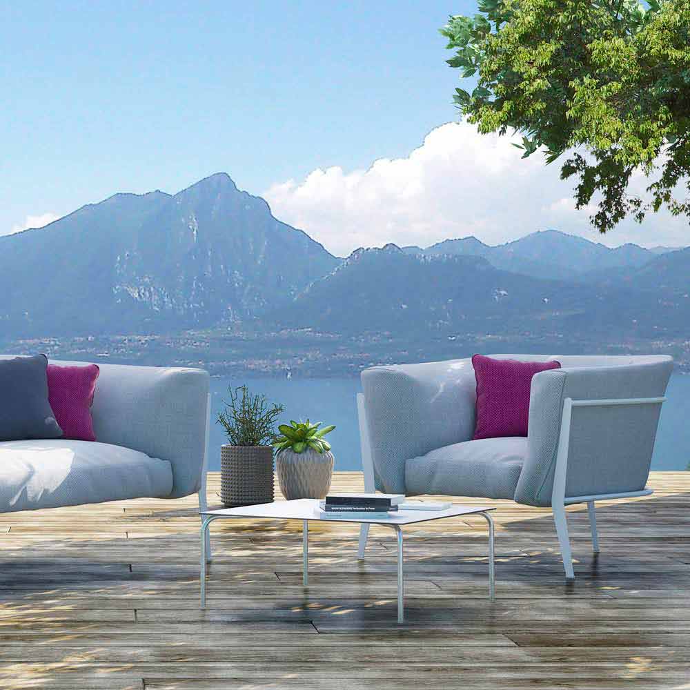 Sillón de exterior moderno, estructura de aluminio y tejido desenfundable, diseño made in Italy.
