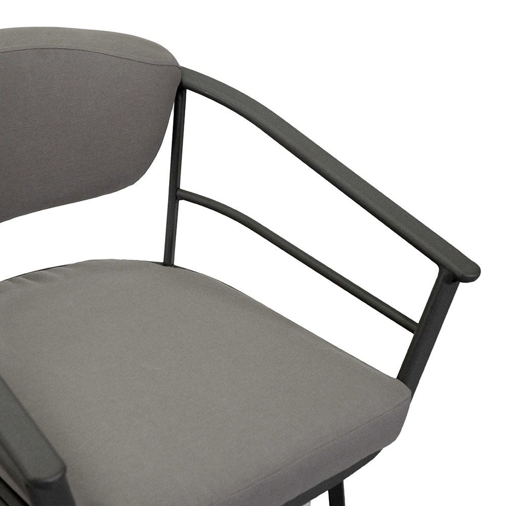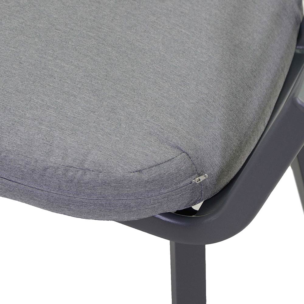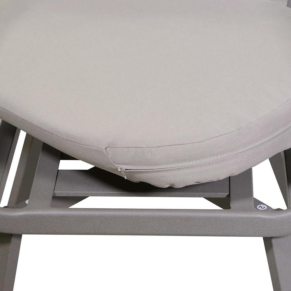 La robusta estructura de aluminio garantiza durabilidad y resistencia a la intemperie, mientras que su color neutro y su elegante forma se integran perfectamente con cualquier decoración de exterior. Ideal para aquellos que buscan un estilo sin concesiones y una comodidad duradera.