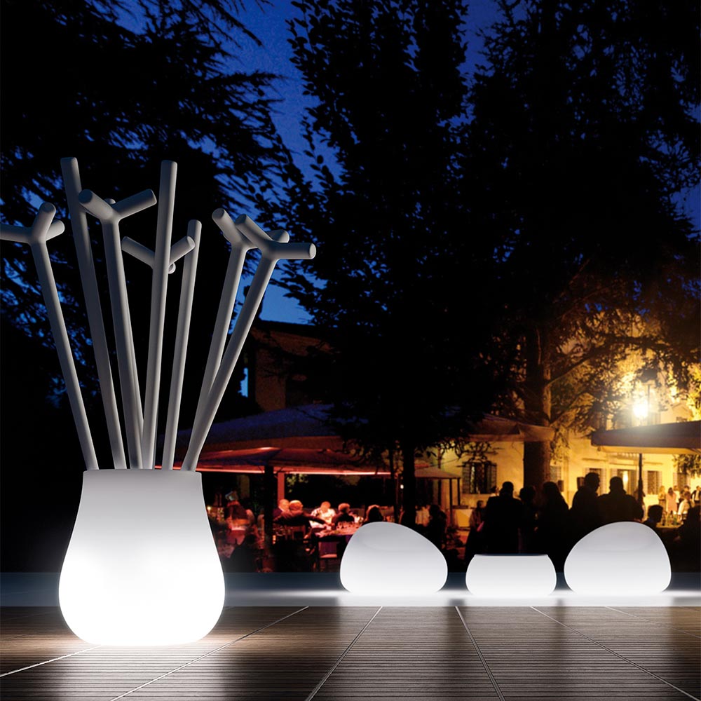 Este sillón de exterior se caracteriza por unas líneas suaves y una forma envolvente que, junto con la iluminación LED, lo convierten en un auténtico objeto de diseño. Perfecta para amueblar con estilo y gusto y al mismo tiempo para dar luz a ambientes exteriores que necesitan carácter y personalidad. Producida íntegramente en Italia con materias primas elegidas para asegurar un producto final robusto y de alta calidad, su estructura es de polietileno caracterizado por una excelente resistencia al sol, los golpes y el calor.