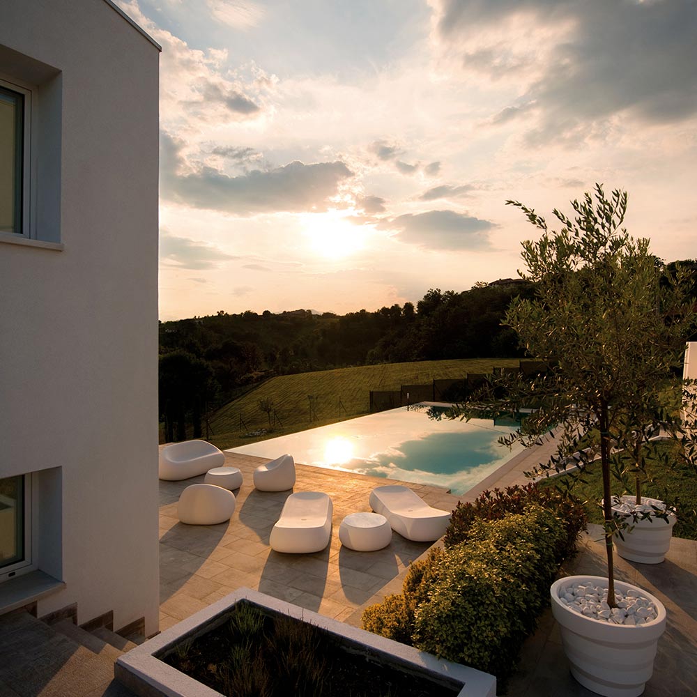 Sillón de exterior de diseño en polietileno mate o lacado Made in Italy.