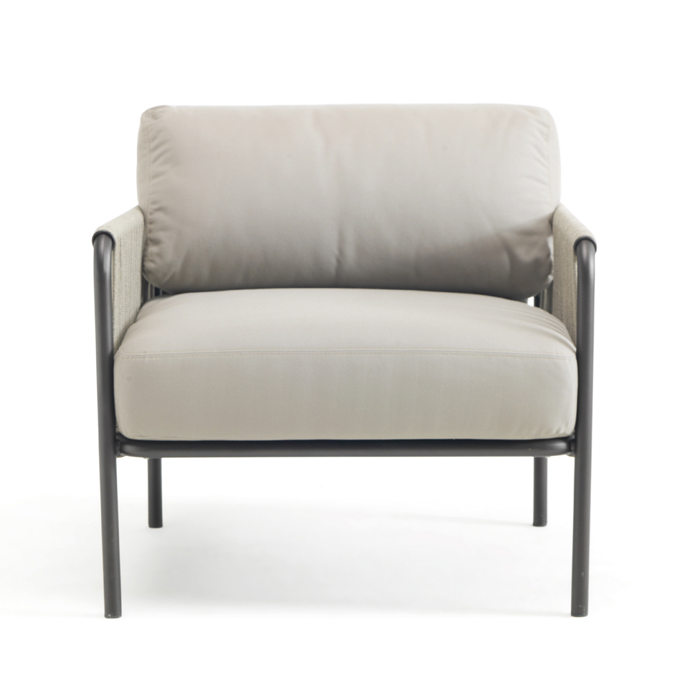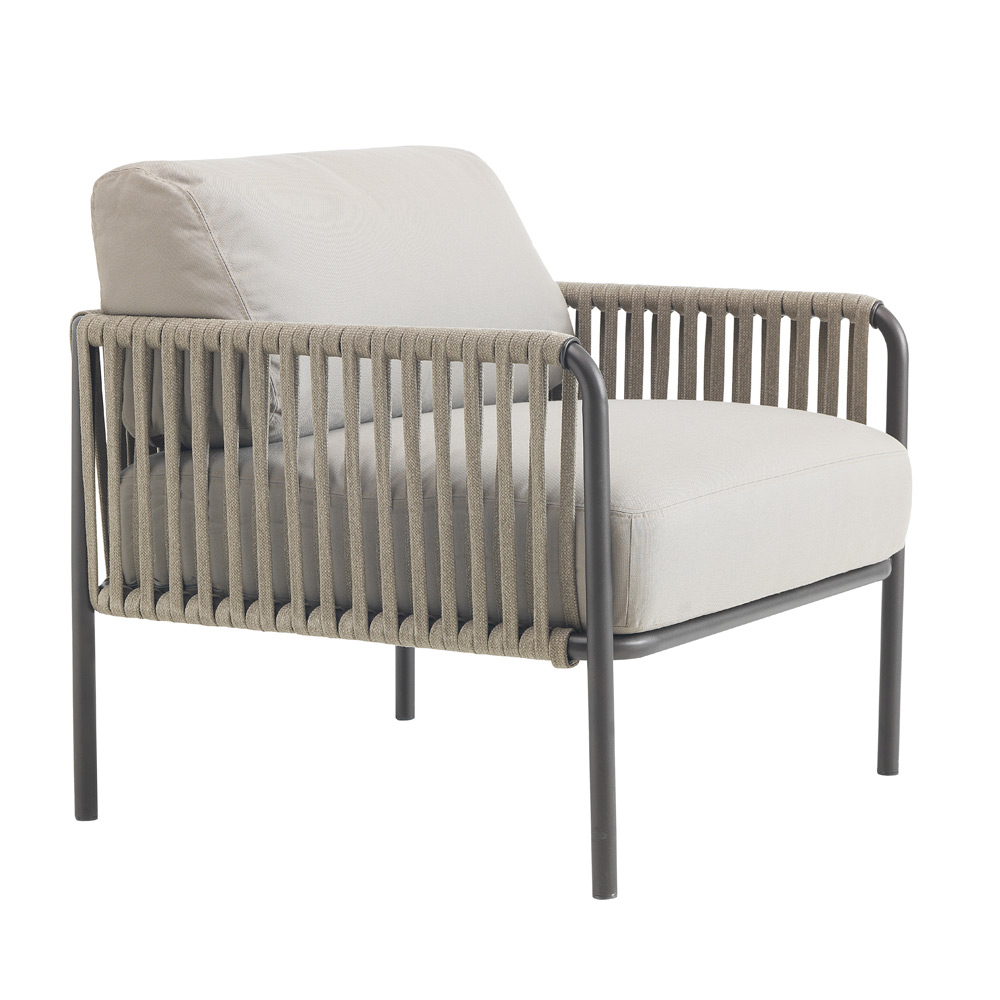 Sillón de exterior en acero y cuerda con cojines Made in Italy.