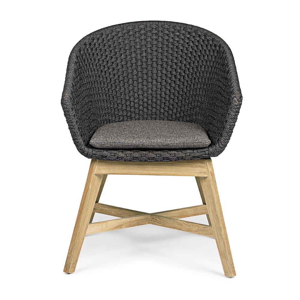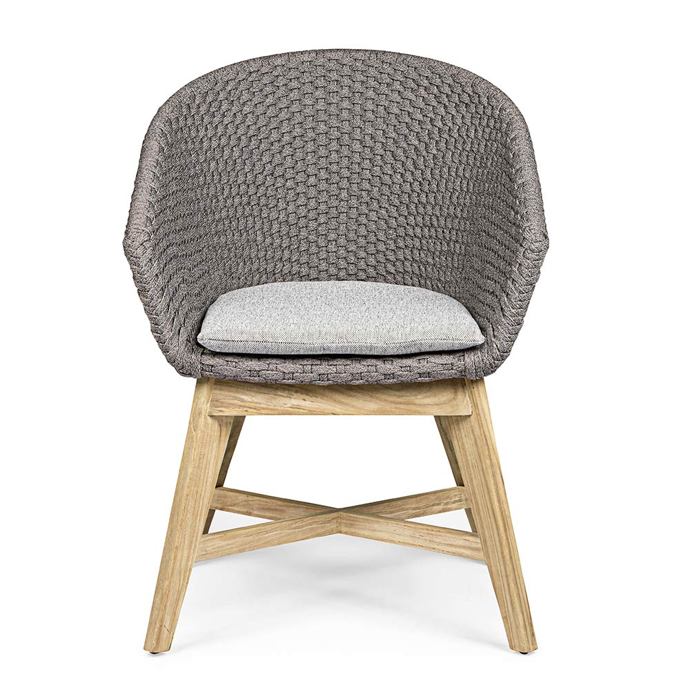 Sillón de exterior en madera de teca con asiento de cuerda y tela, 2 piezas de calidad.