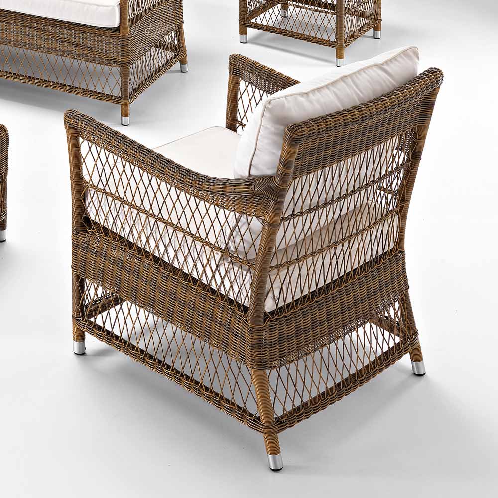 Este sillón se caracteriza por su marcado diseño clásico, un estilo del pasado revisitado en clave de exterior.