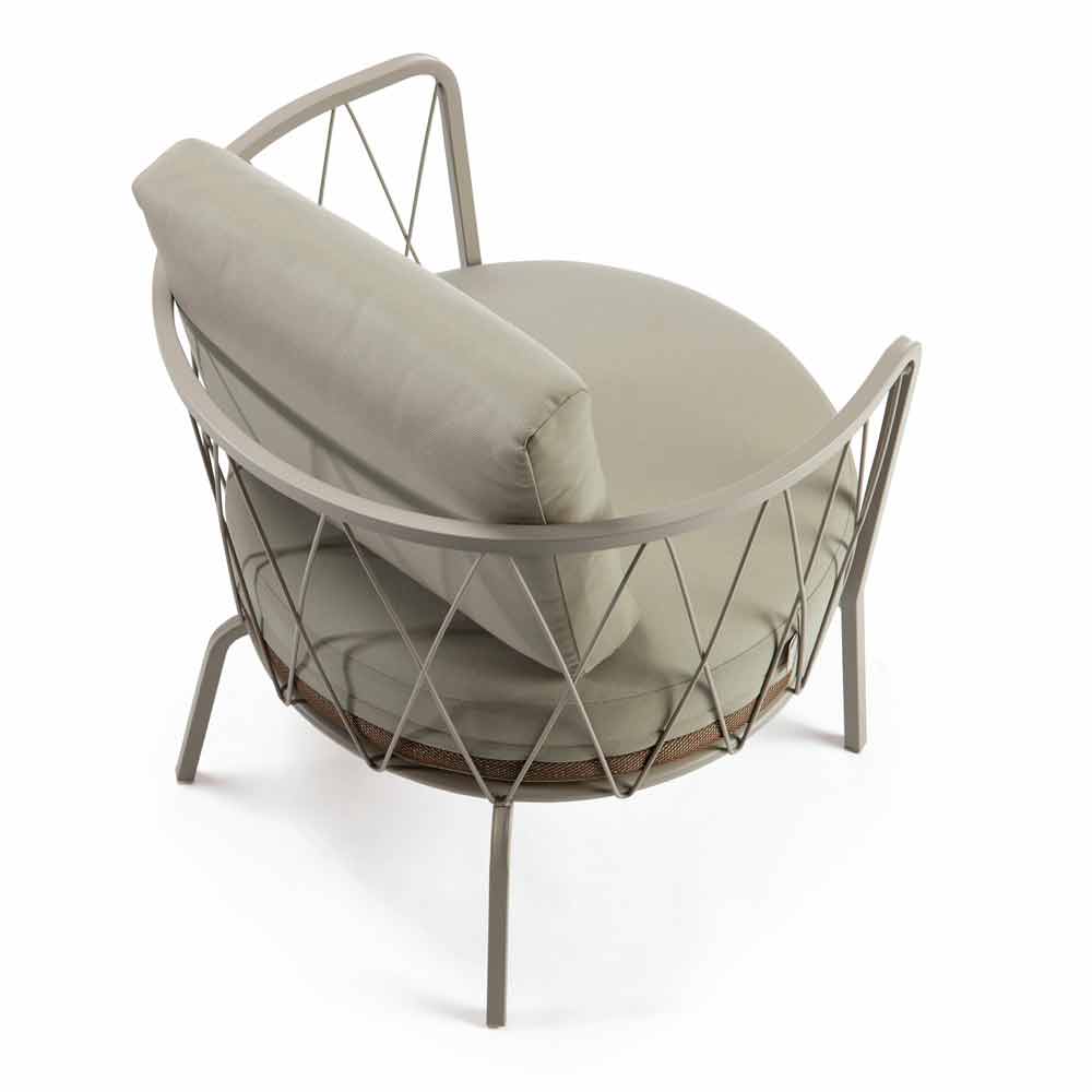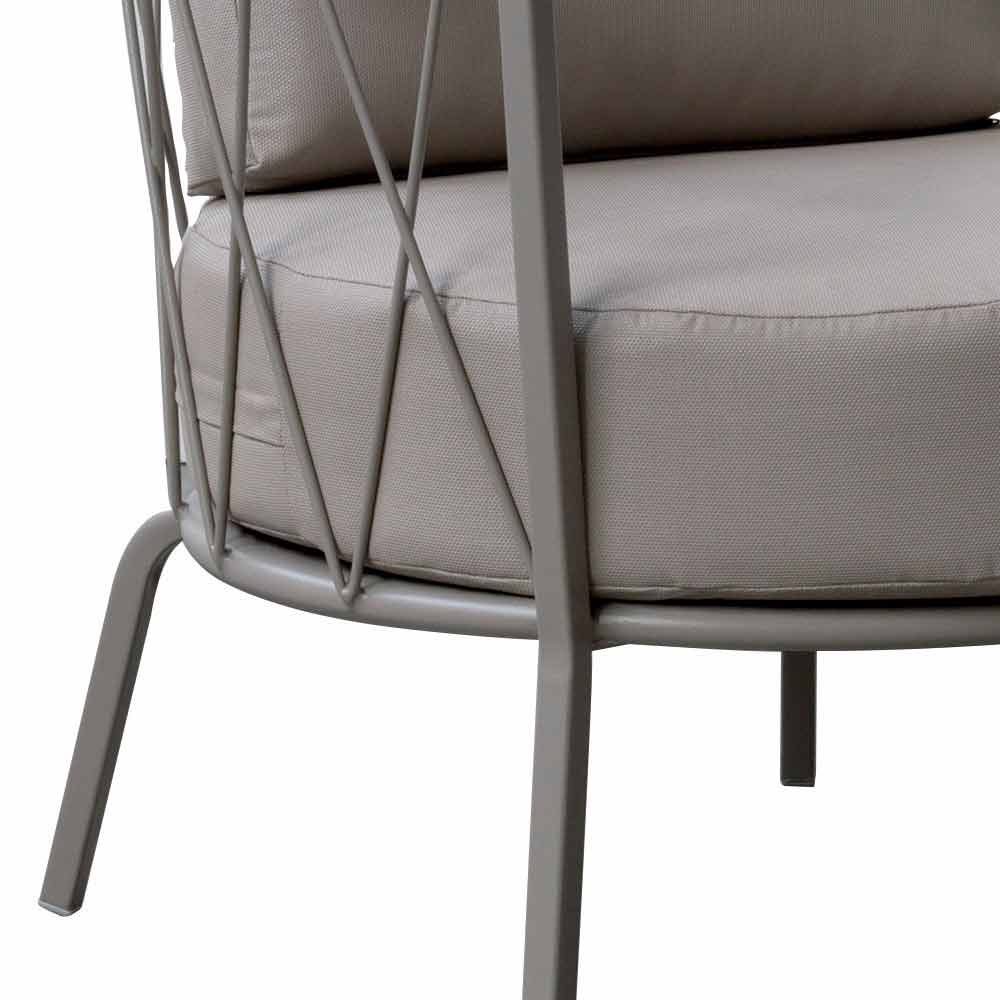 Sillón de exterior de diseño en tejido y hierro galvanizado pintado en polvo con cojín Made in Italy.