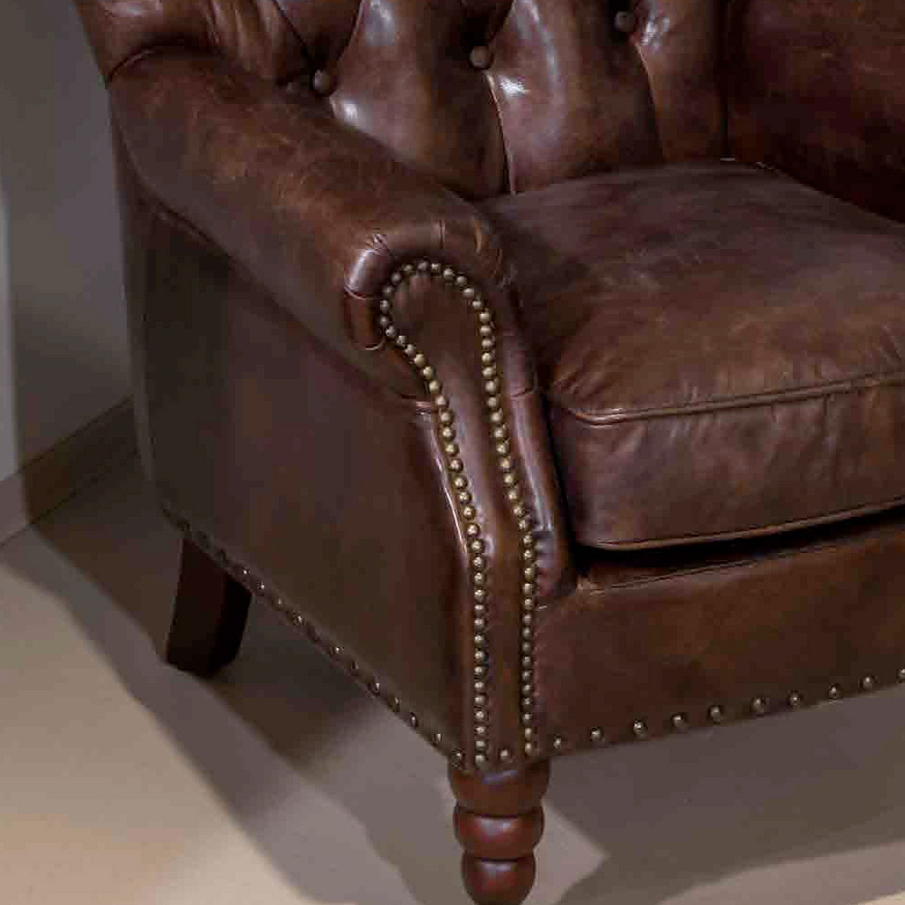 Sillón de Interior Totalmente Realizado en Piel Vintage Efecto Envejecido - Sello