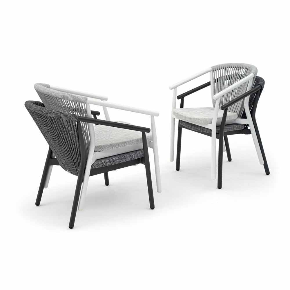 Smart es el sillón perfecto para pasar tiempo inmerso en la naturaleza. La curva envolvente del respaldo y la delgada línea de las piernas dibujan una silueta elegante, realzada por un entrelazado armonioso en cuerda sintética.