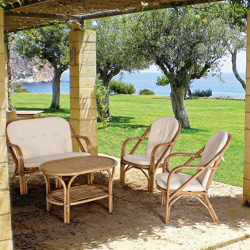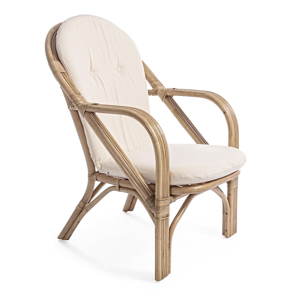 Sillón de jardín de ratán natural con cojín extraíble - Maurizia