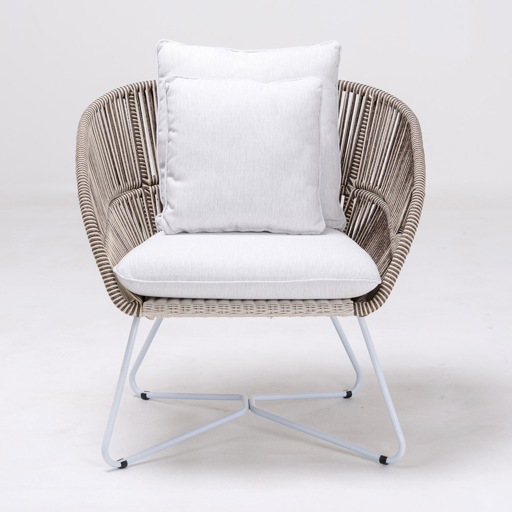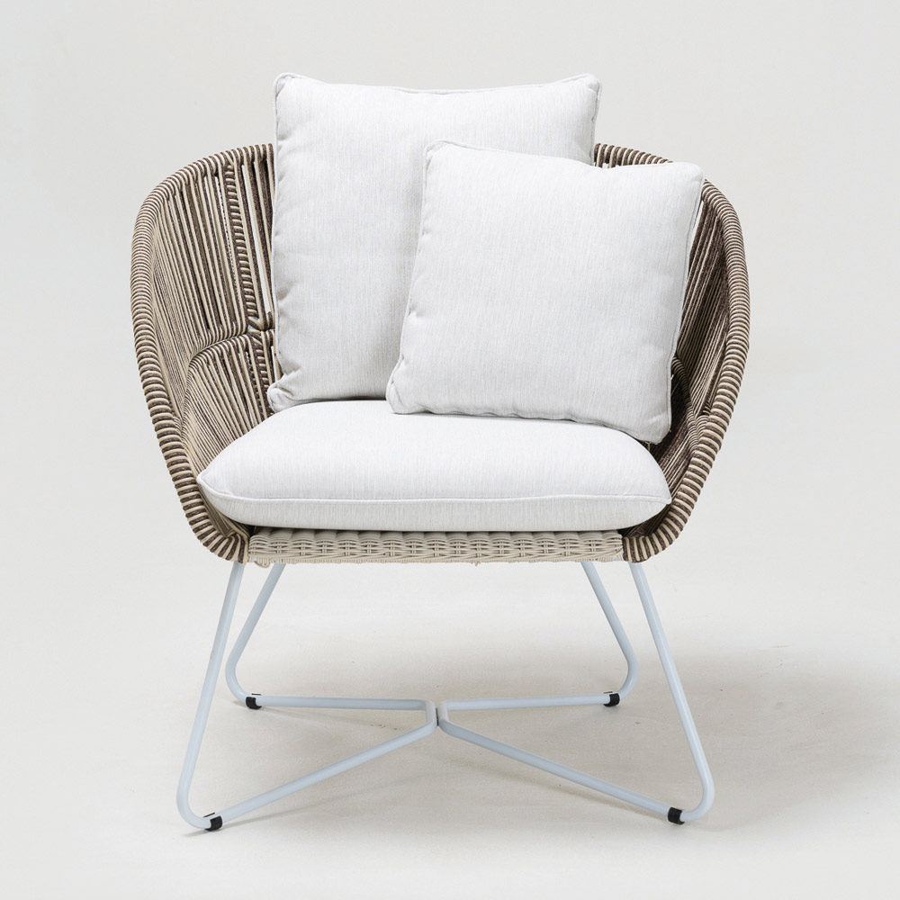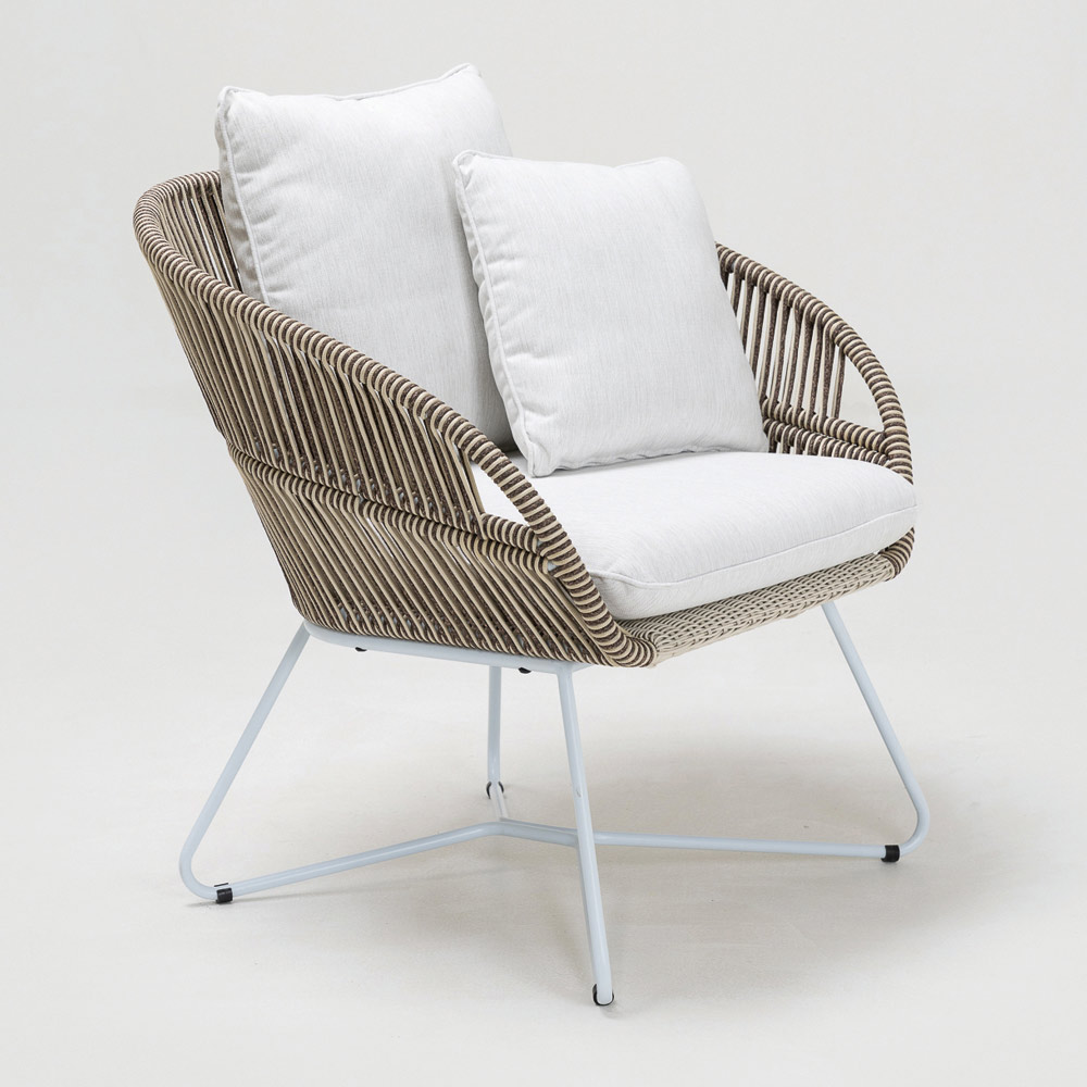 tejido de Olefina/PP ROPE con acabado bicolor blanco perla y capuchino y cojín de asiento y respaldo en