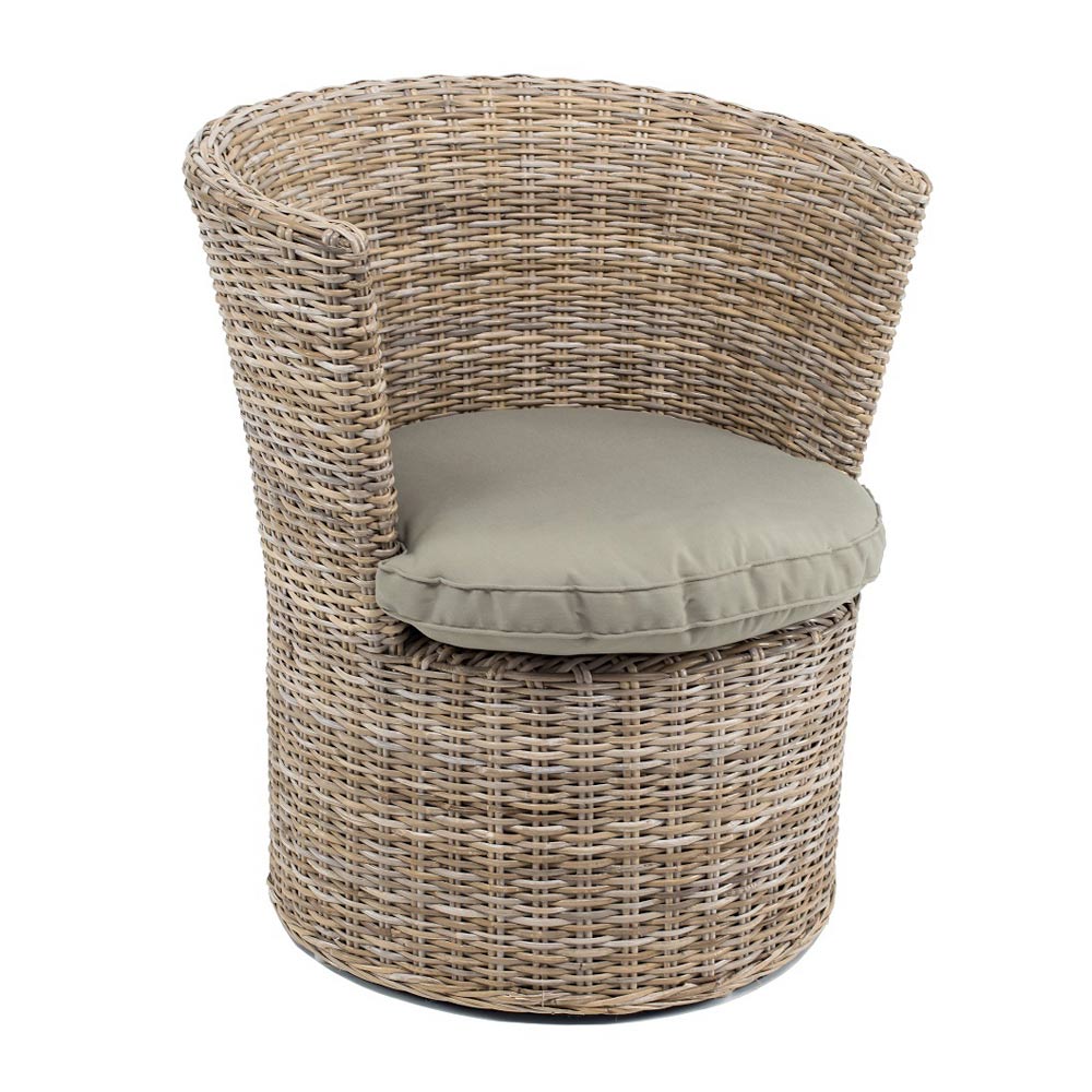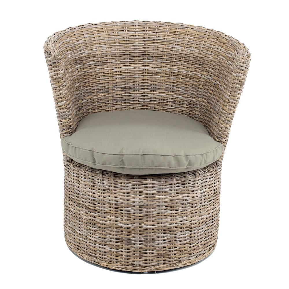 Sillón de exterior fabricado en kubu tejido a mano con cojín de asiento estándar incluido en el acabado estándargris. Kubu es uno de los materiales naturales más resistentes que se encuentran en la naturaleza, pero siempre permanece muy ligero .