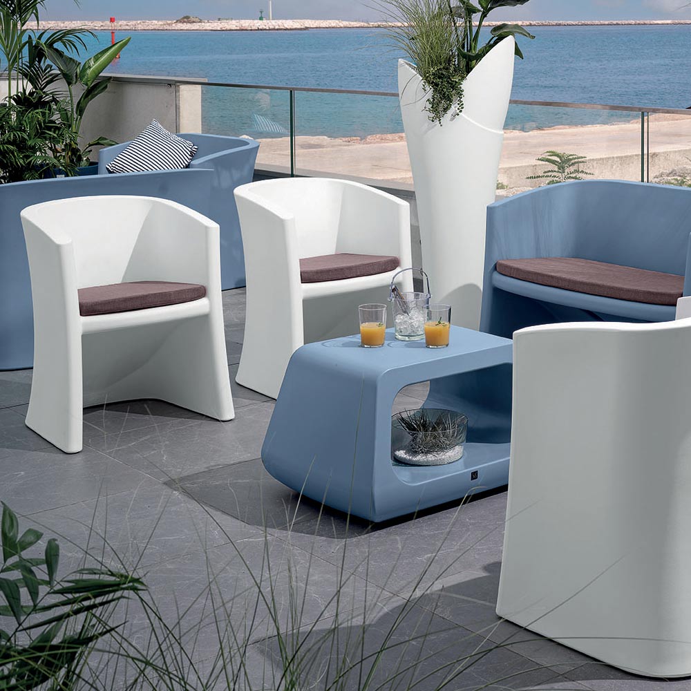 Este sillón de exterior íntegramente fabricado en Italia con estructura de polietileno de color está diseñado para quienes buscan practicidad y diseño al mismo tiempo para un confort casi envolvente .