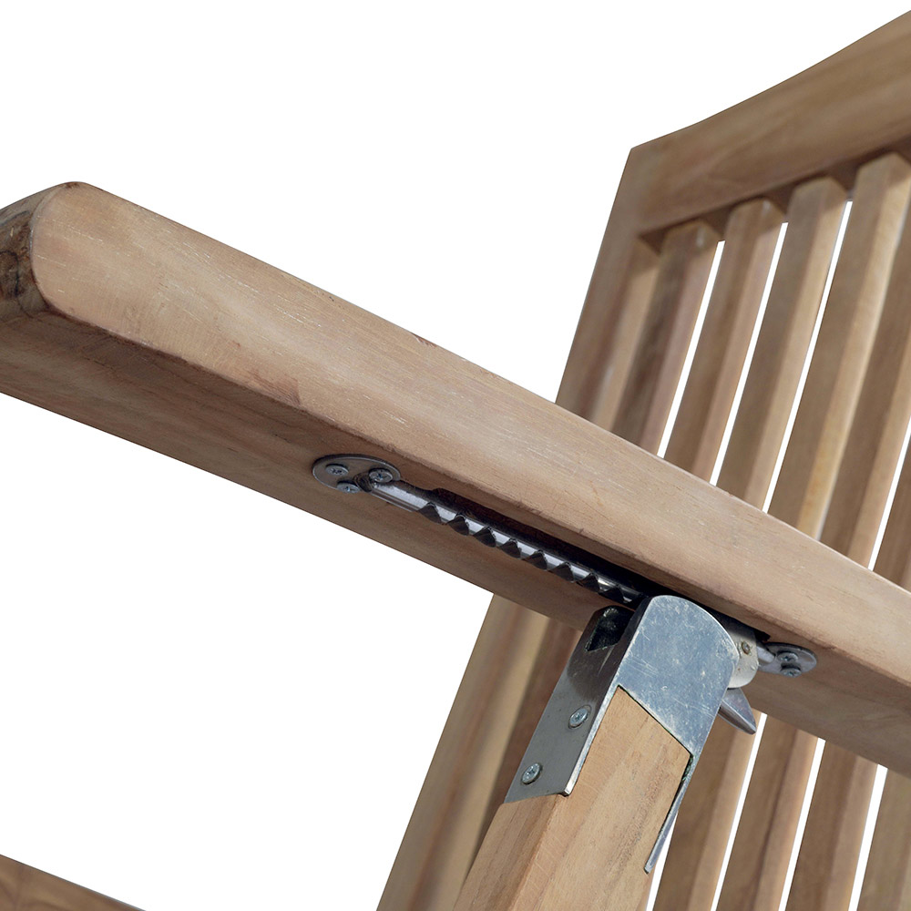 El sillón es regulable , lo que te permitirá encontrar la posición perfecta para conseguir el máximo confort, ya sea que quieras leer, tomar el sol o echarte una siesta. Las lamas ergonómicas ofrecen un soporte óptimo, mientras que la sólida estructura de teca garantiza estabilidad y robustez.