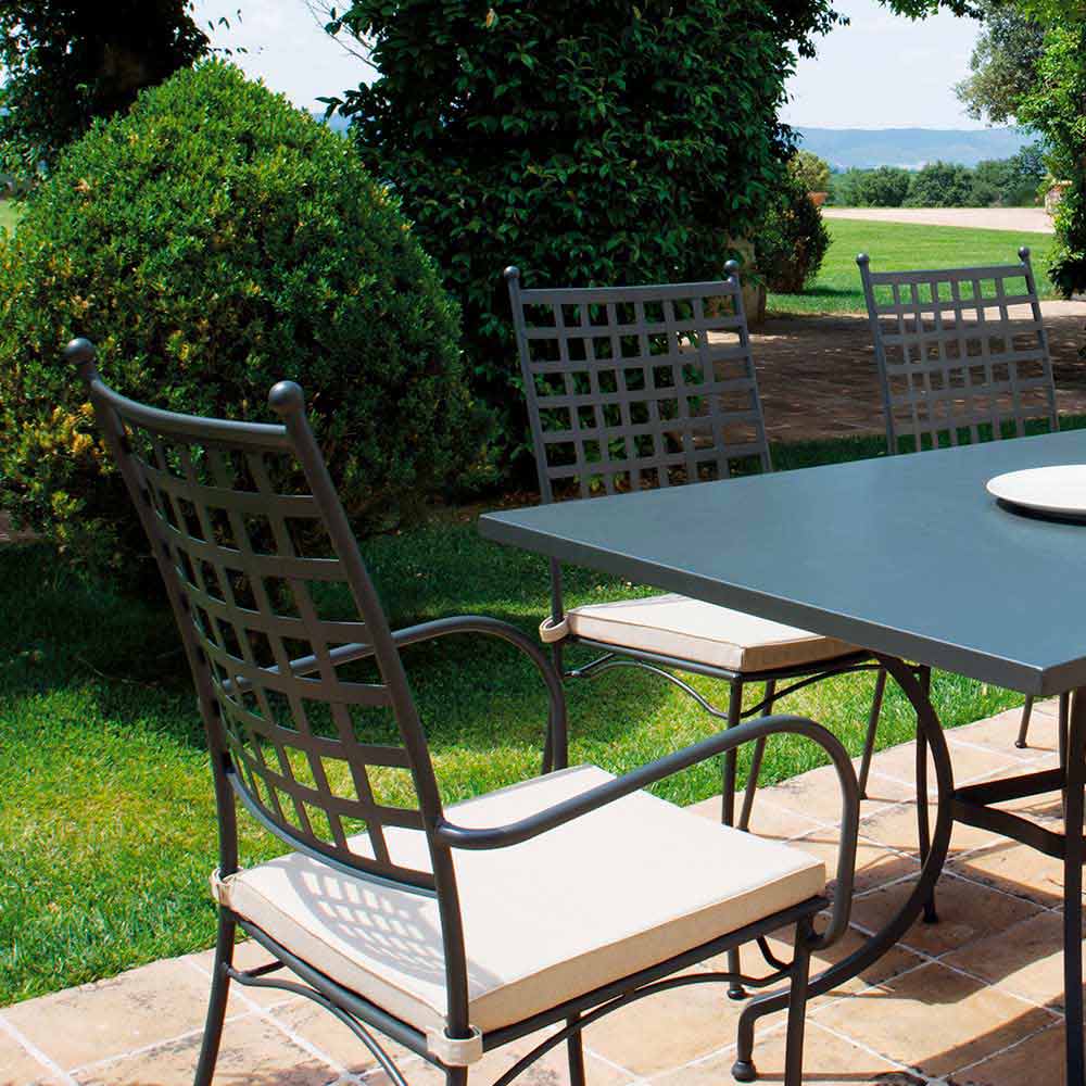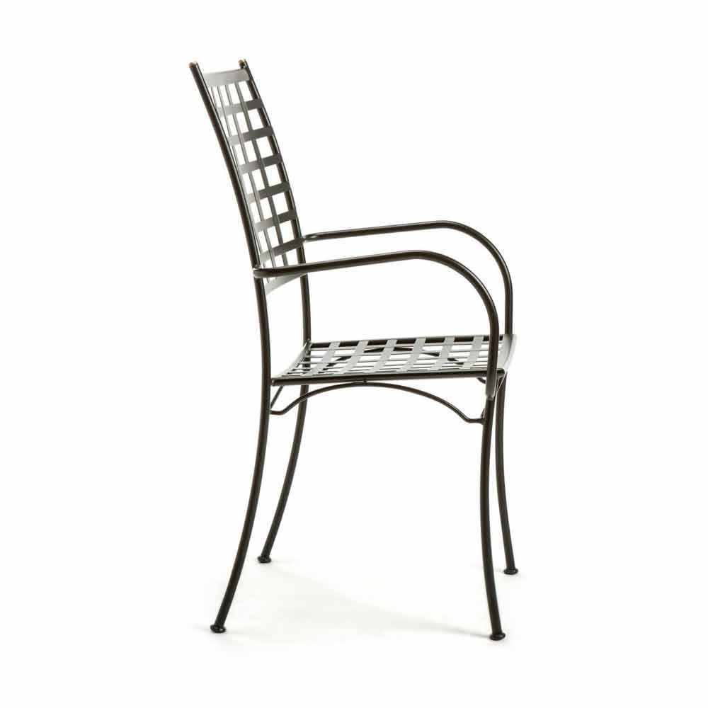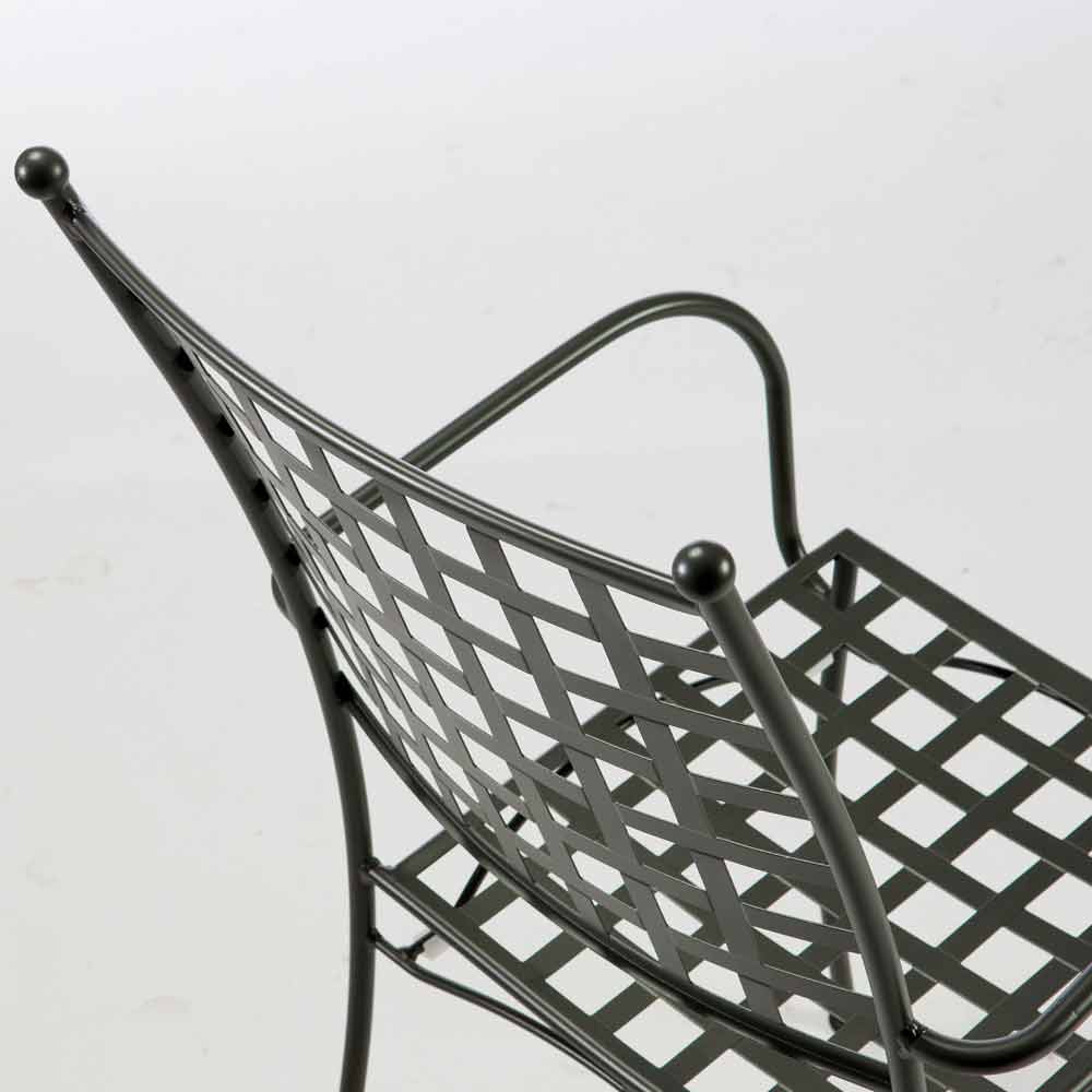 Sillón de exterior en hierro galvanizado pintado en polvo con reposabrazos apilable. Fabricado en Italia, 4 piezas.