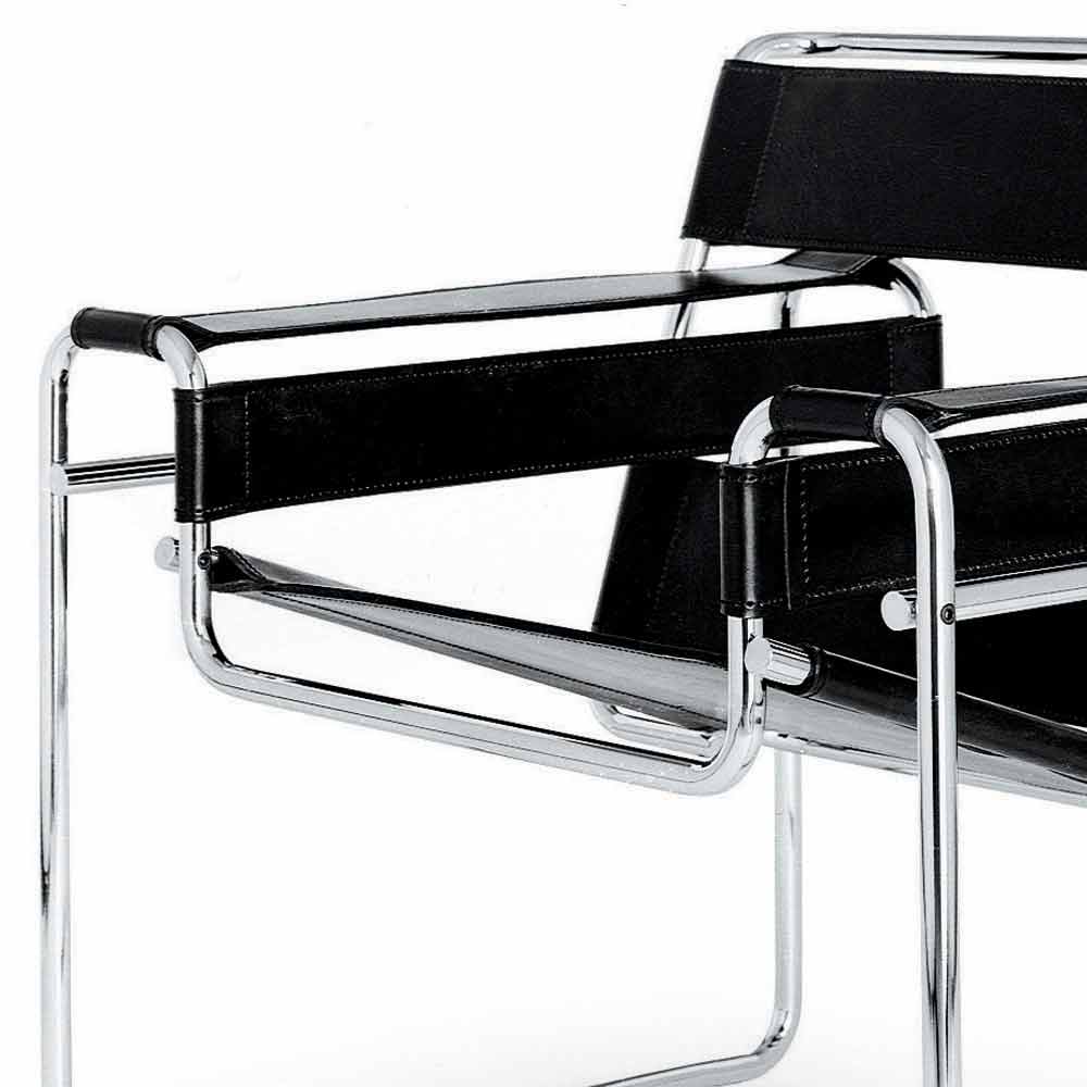 Sillón de oficina en acero cromado y cuero fabricado en Italia.