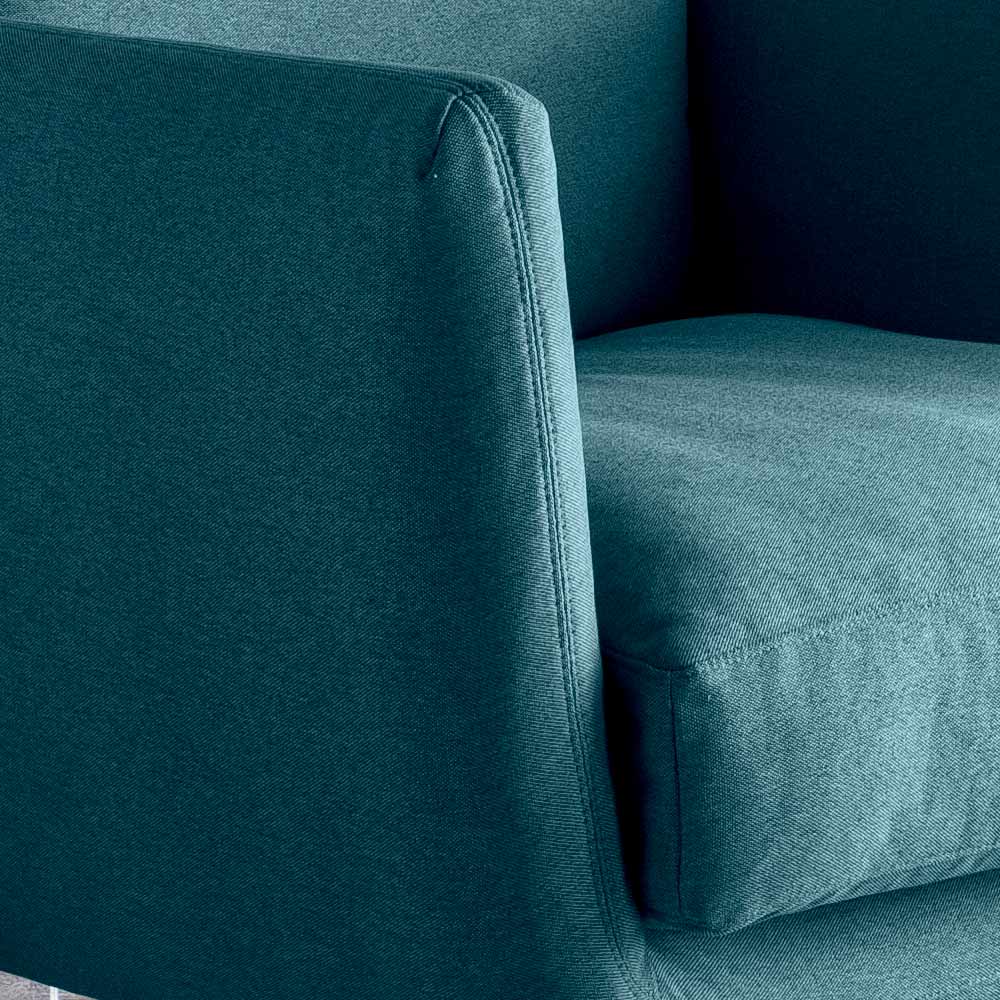 Sillón de salón realizado con estructura compuesta por madera maciza, contrachapado, aglomerado de madera y relleno con paneles de fibra de madera en bruto . El acolchado de la propia estructura es de espuma de poliuretano D.40 de fibra de poliéster . Muelles con correas elásticas de elasticidad controlada montados en sistema cruzado.