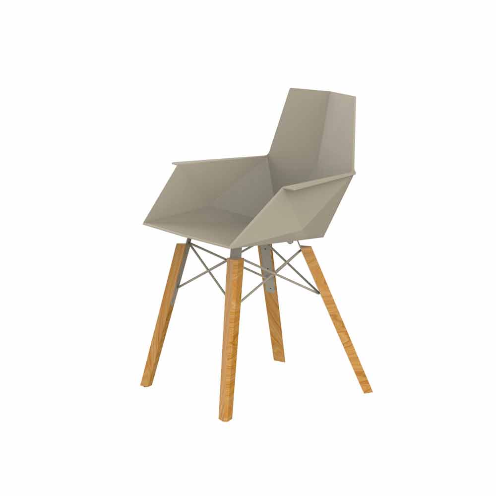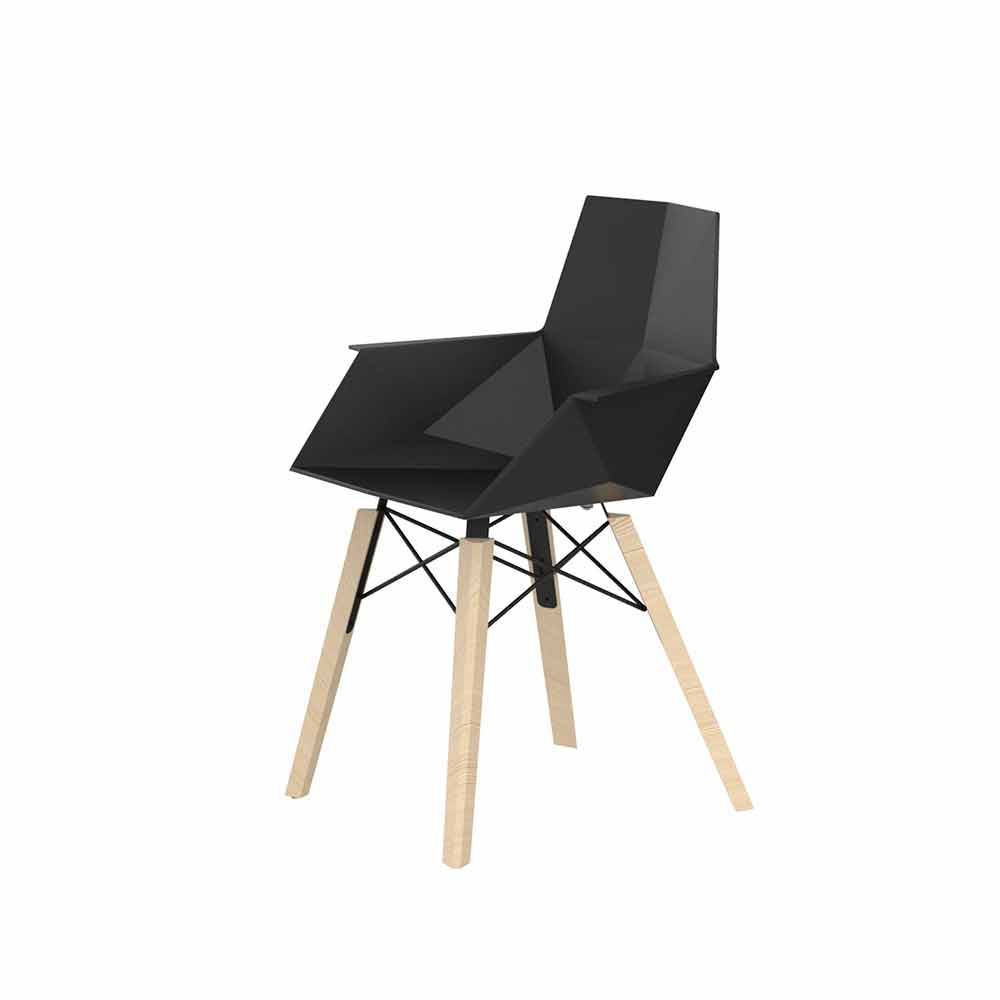 Sillón de diseño en polipropileno con estructura en madera de fresno y asiento y respaldo en polipropileno en varios colores.