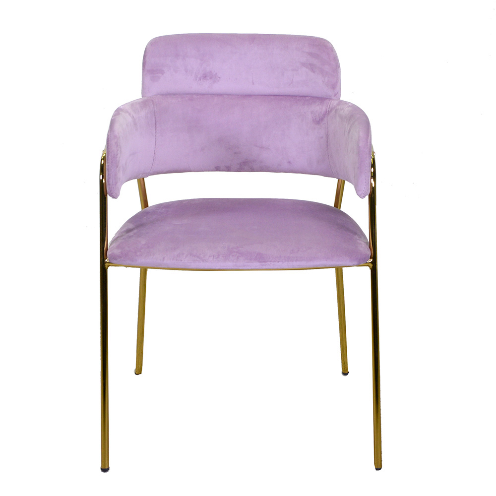 La estructura minimalista, realizada con patas de metal dorado, confiere al sillón un toque de glamuroso refinamiento, perfecto para ambientes modernos o vintage chic. El contraste entre el terciopelo y el acabado dorado añade un efecto visual de gran impacto, haciendo de este asiento una verdadera pieza de mobiliario de diseño.