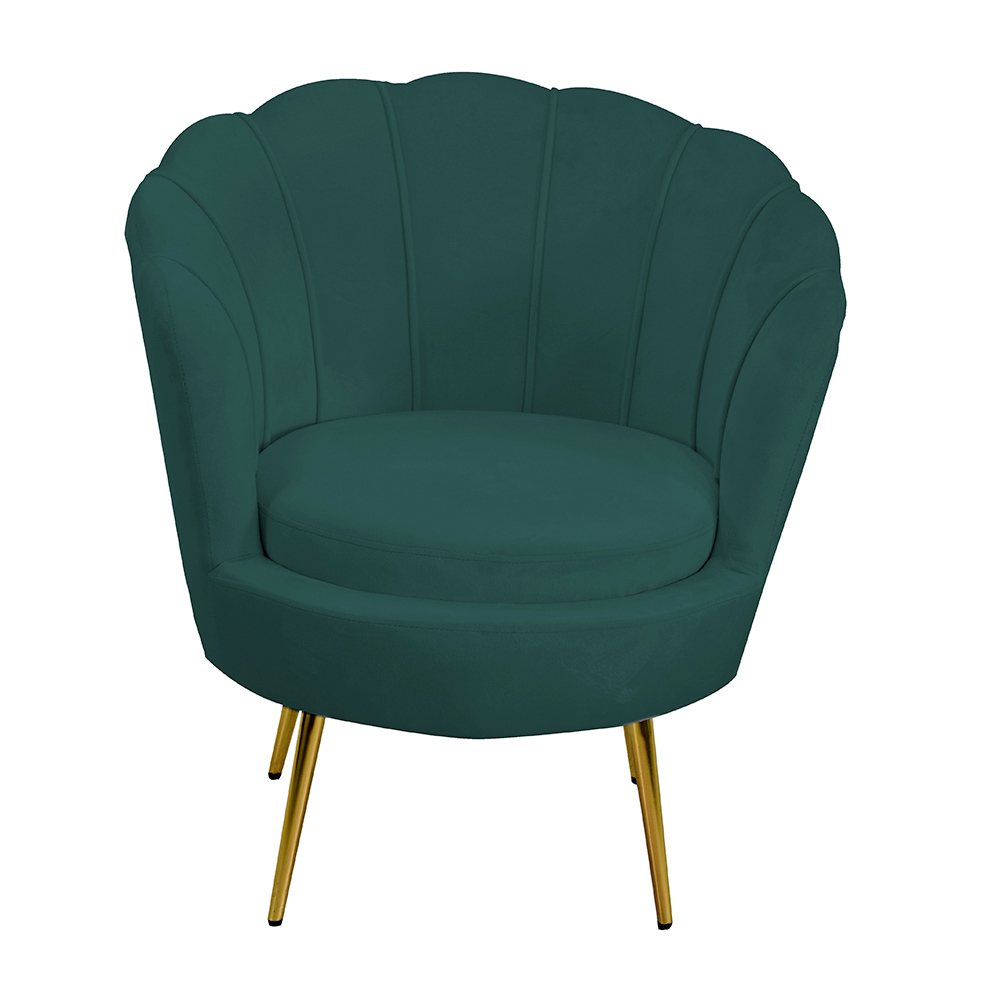 Con su diseño en forma de cáscara, este sillón combina elegancia vintage y estilo moderno . El terciopelo , suave y lujoso al tacto, da una sensación de refinamiento y confort envolvente , haciéndolo perfecto para enriquecer un salón, un dormitorio o un estudio con un elemento de glamour intemporal .