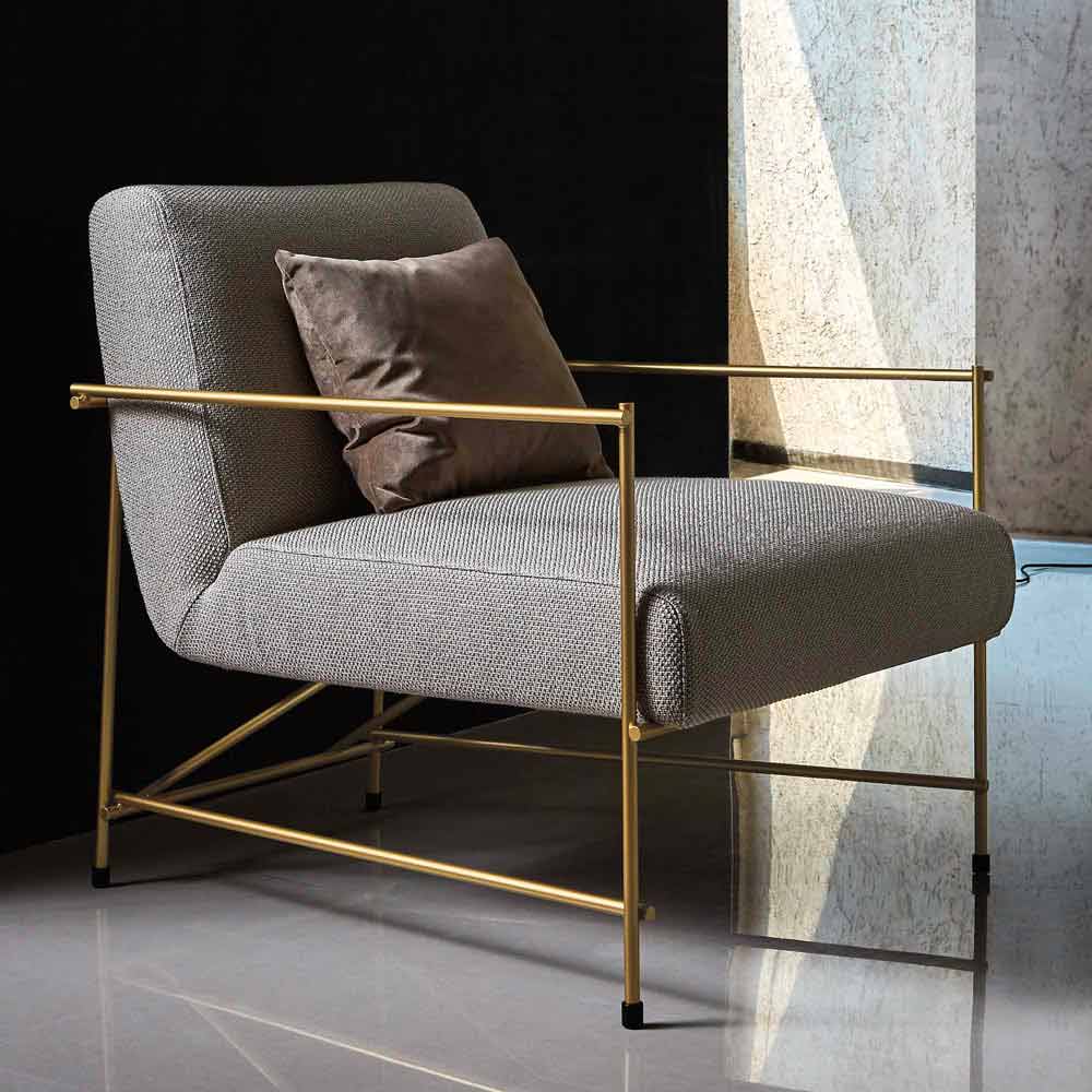 Sillón de tela con estructura de metal Made in Italy, fino.