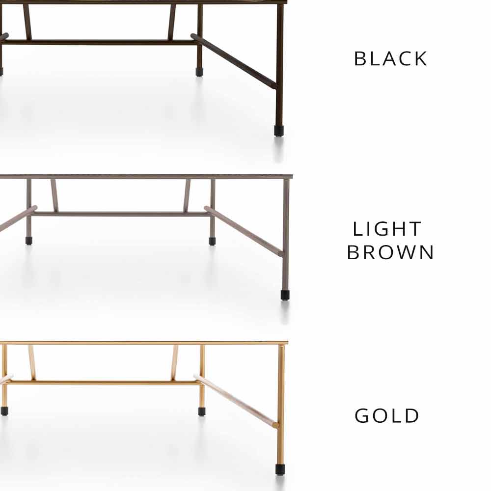 estructura de metal pintado , carcasa en paneles de madera blockboard y cojines tapizados en espuma de poliuretano indeformable recubierta de Tecnoform. Asiento y respaldo en