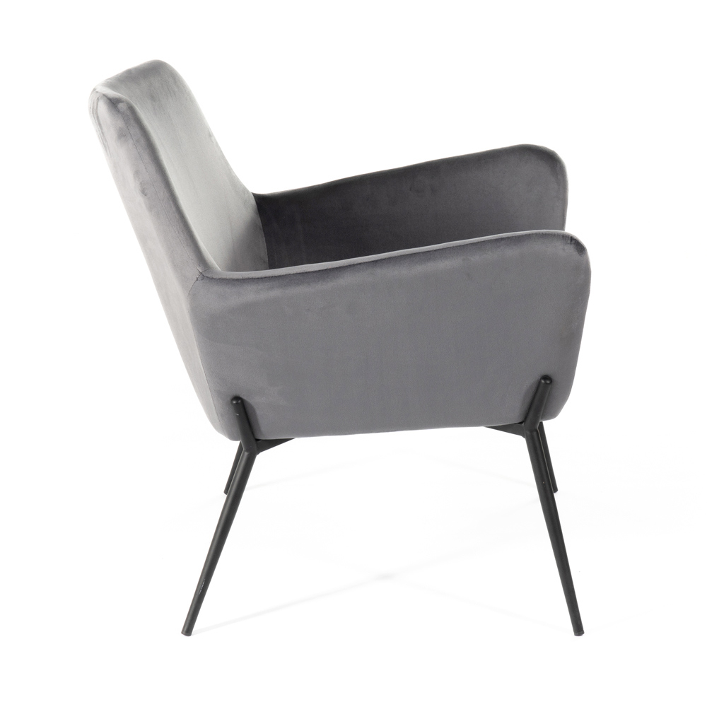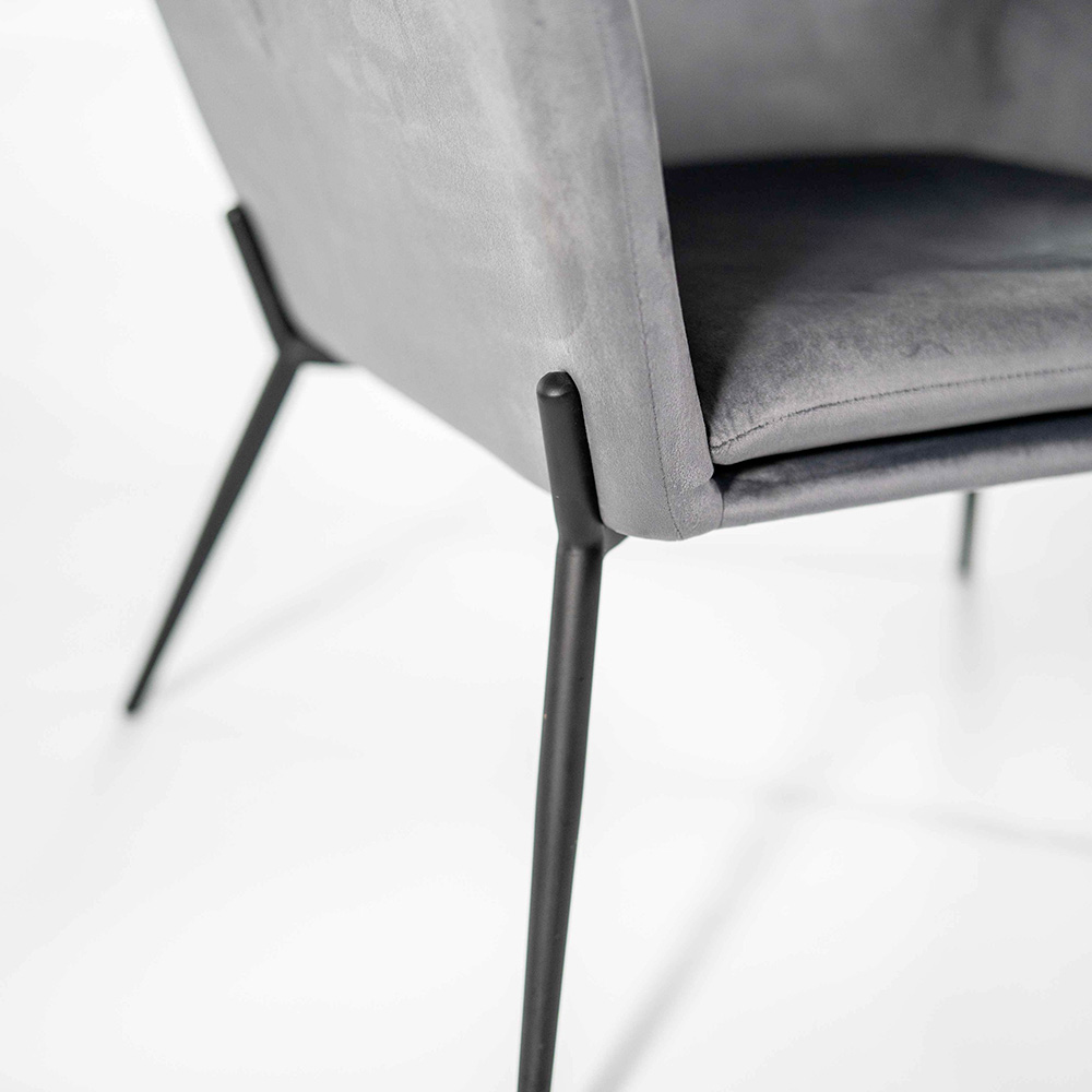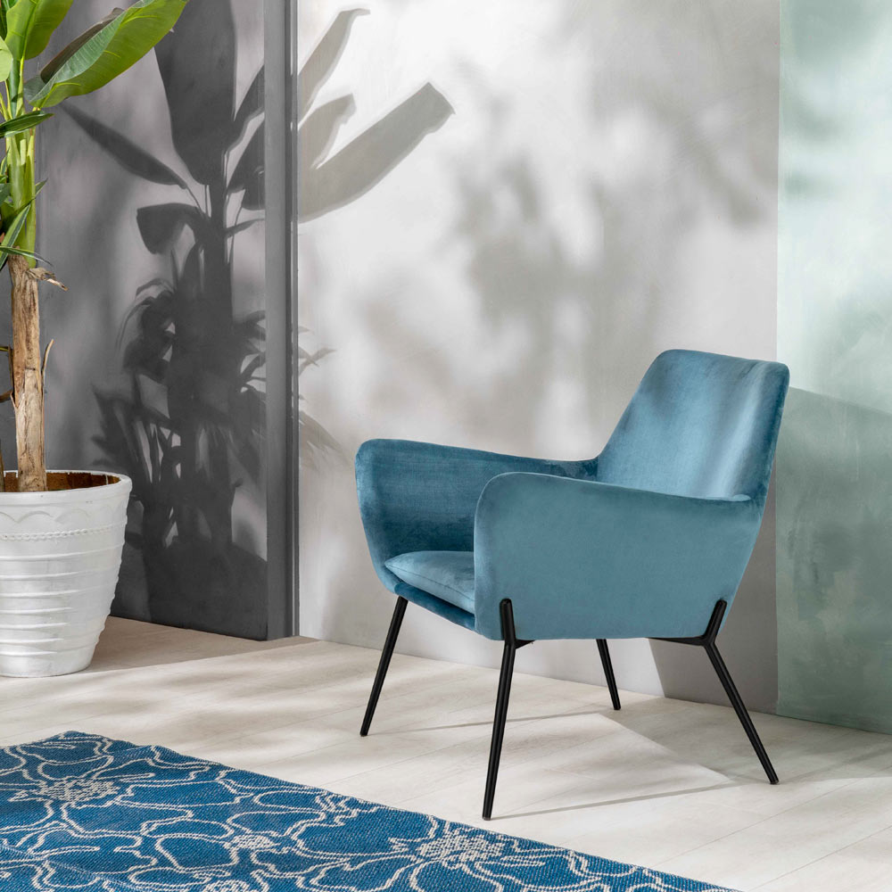 Expresión de elegancia y refinamiento, este sillón está diseñado para dar un toque elegante al salón, pero se presta a cualquier solución de decoración. El suave terciopelo envuelve el asiento, haciéndolo extremadamente agradable al tacto. La estructura remata con unas patas de esbelto diseño en elegante metal. Es un complemento de decoración capaz de dar singularidad a los espacios, convirtiéndose en el punto focal de cualquier salón moderno y contemporáneo.