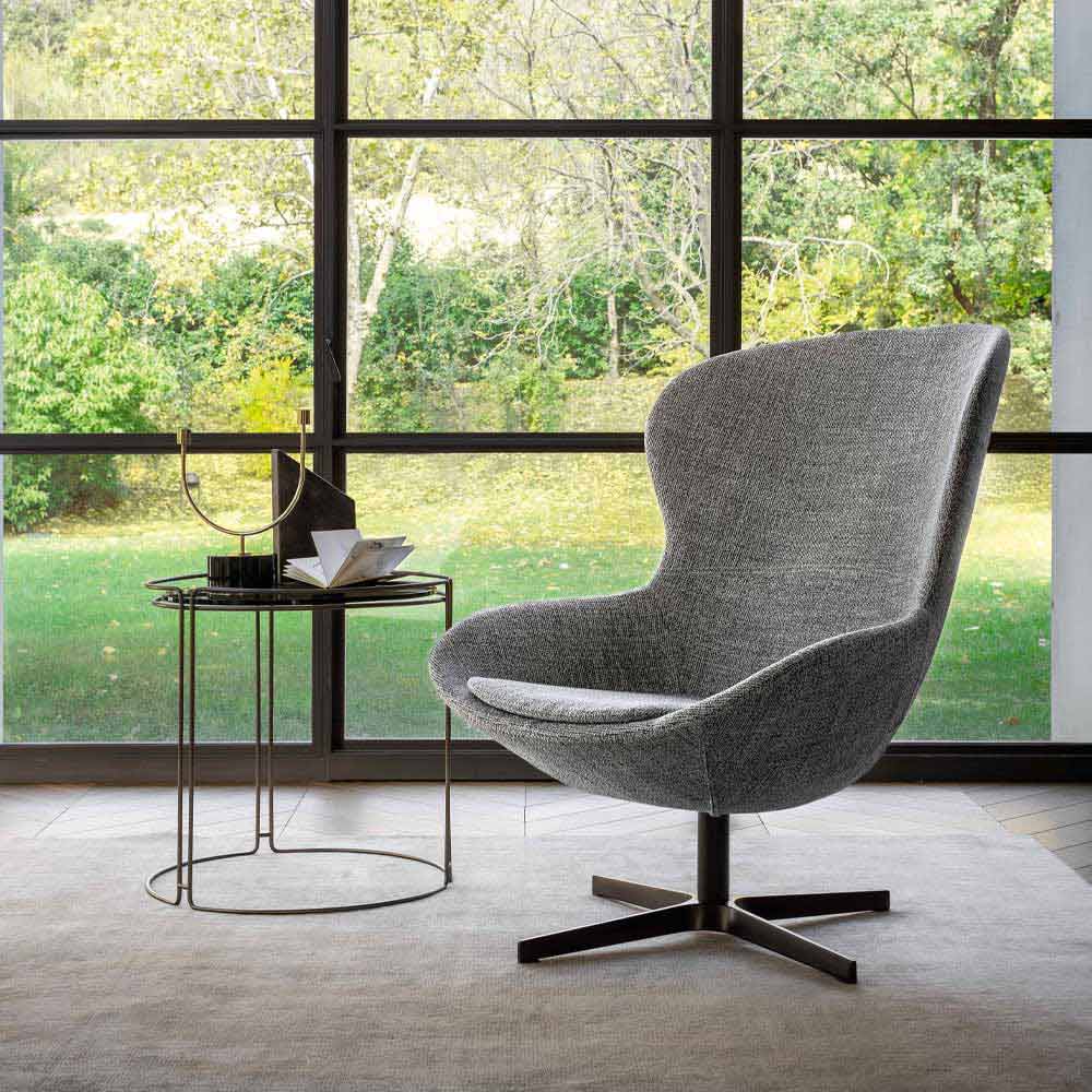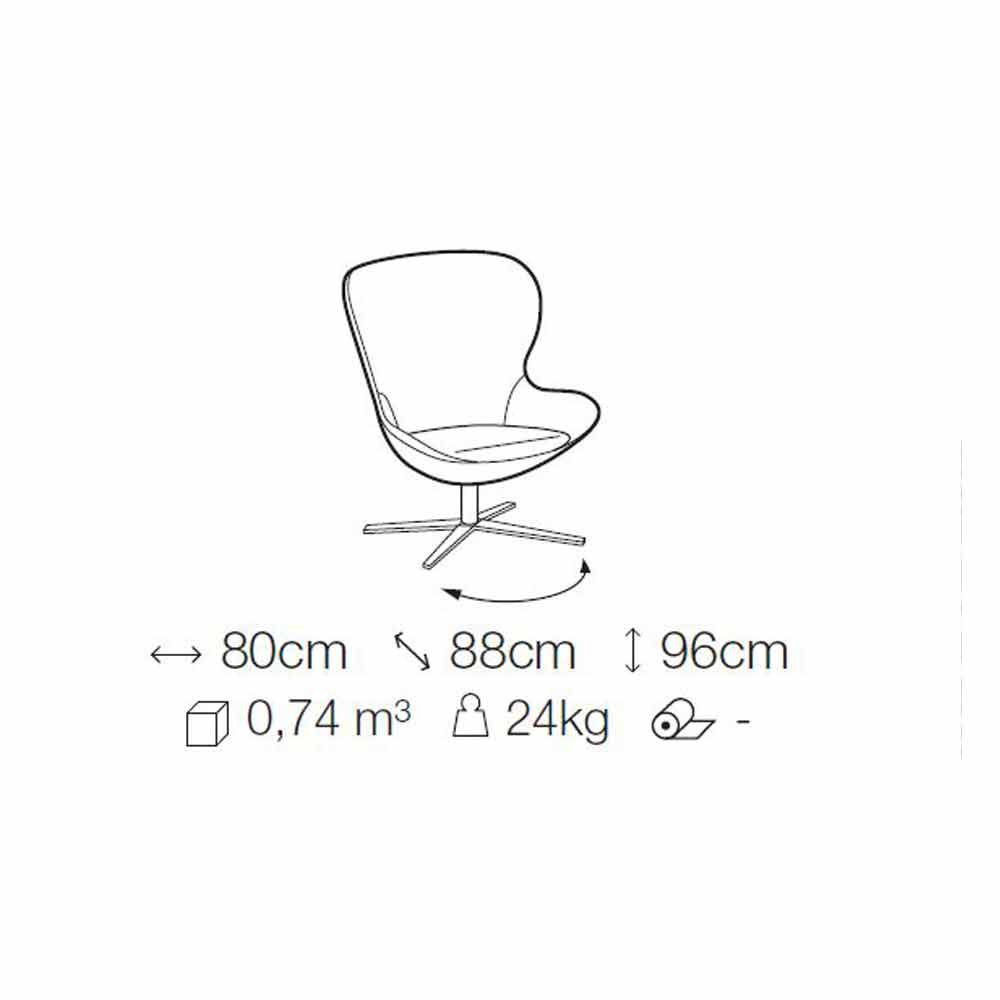 Su estructura se caracteriza por formas suaves y envolventes y por proporciones imponentes pero calibradas, pensadas para dar vida a un fuerte sentido de acogida. La particular base giratoria lo hace aún más único y especial y al mismo tiempo particularmente