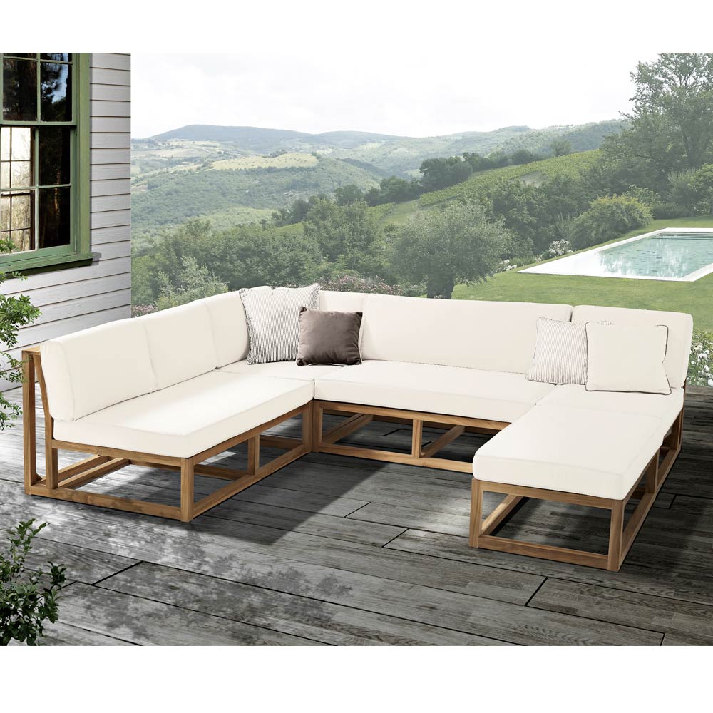 No recomendamos colocar muebles de teca nuevos en el exterior sobre suelos de piedra porosa, al menos hasta que el proceso de aparición de aceite haya remitido. No recomendamos dejar los cojines en contacto directo con las superficies de teca durante este proceso, ya que lo más probable es que se manchen (los tejidos manchados con aceite de teca natural aún pueden limpiarse con agua y jabón neutro). La cantidad de aceite que sale de la teca durante los primeros meses será más abundante y, por tanto, más propensa a causar manchas en superficies y tejidos.