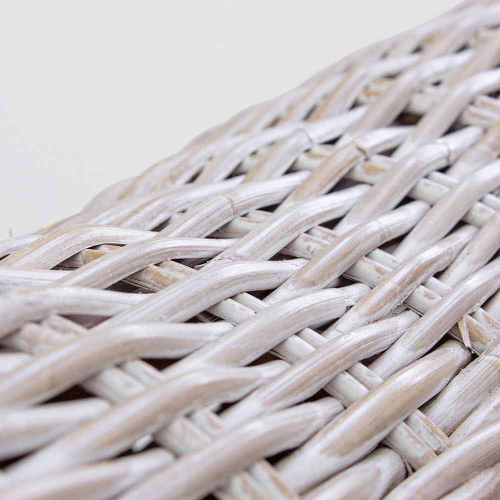 Estructura de ratán, tejido kubu, acabado a base de nitrocelulosa. Pies de madera de mango.