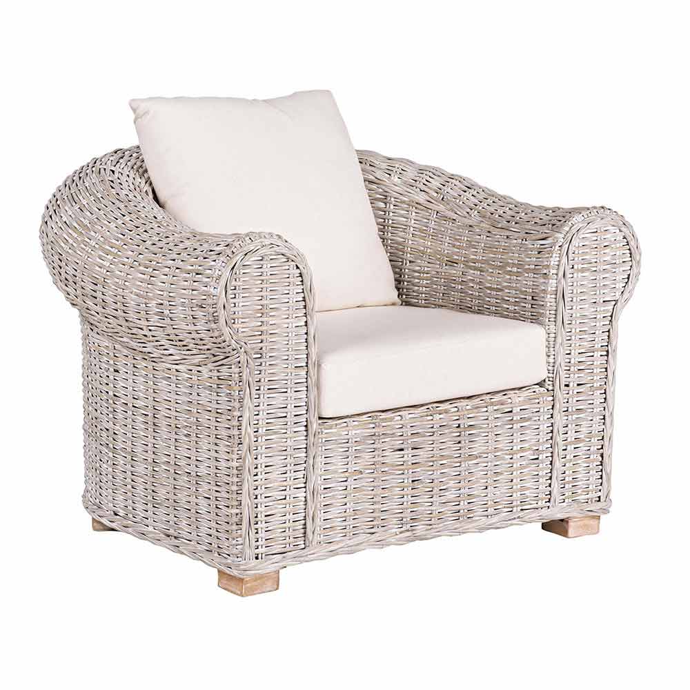 Sillón de exterior de mimbre con cojín de asiento - Nathaniel